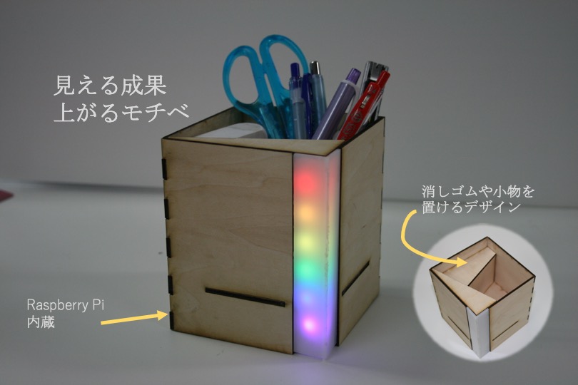 ペン立てでは2時間で虹が完成し,色が揃うことによる達成感がモチベーションとなります.