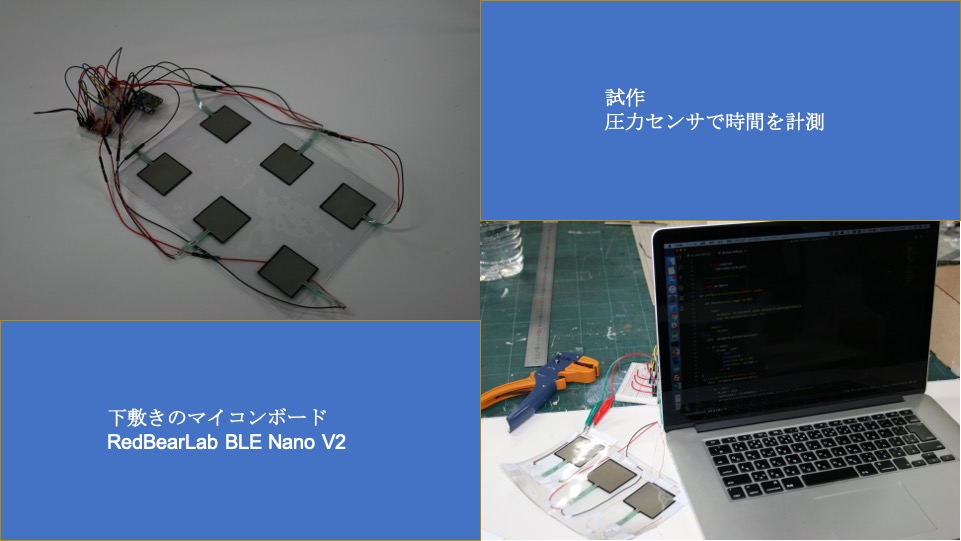 下敷き内の複数の圧力センサにより,突っ伏して寝た人の体重を感知して眠った時間(秒)を計測します.