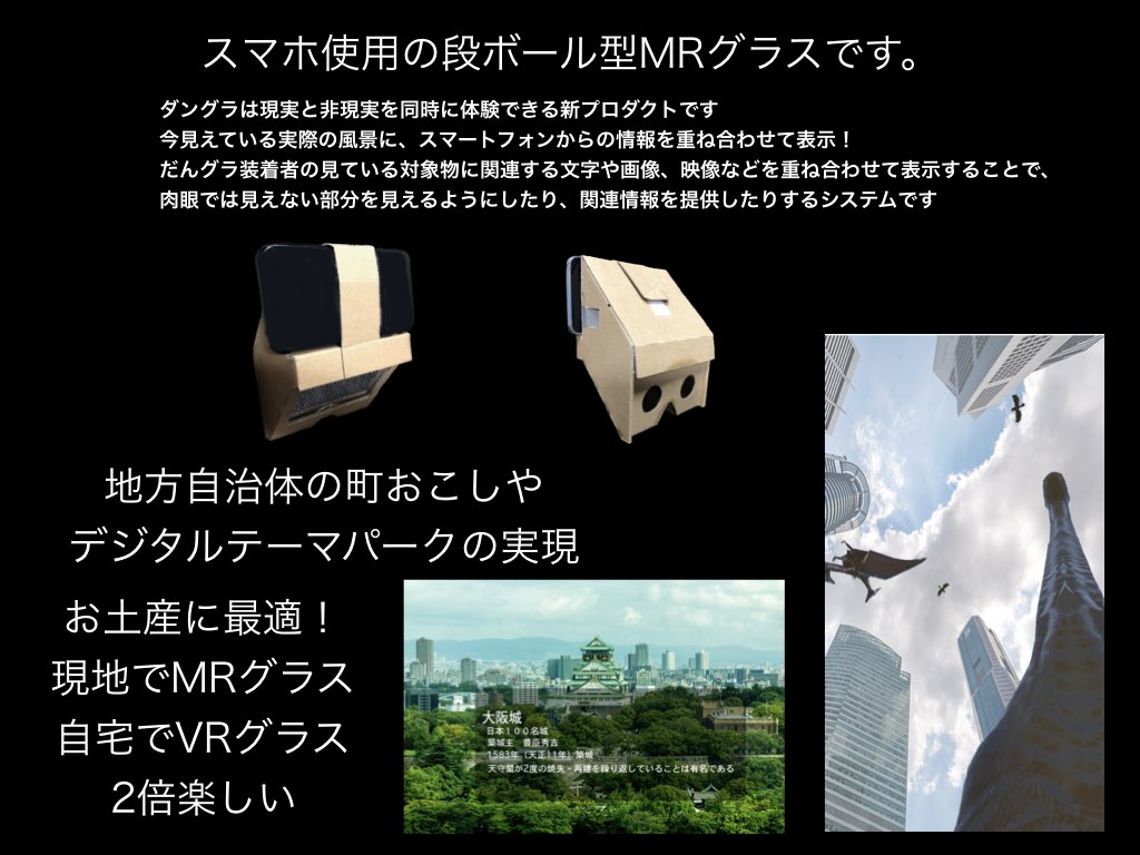1:スマホタイプMRグラス「だんグラPro」の2眼タイプを新開発しました。2015年エントリーのタイムマシンカメラ(ダングラ)「 https://gugen.jp/entry2015/076 」の新商品となります。
