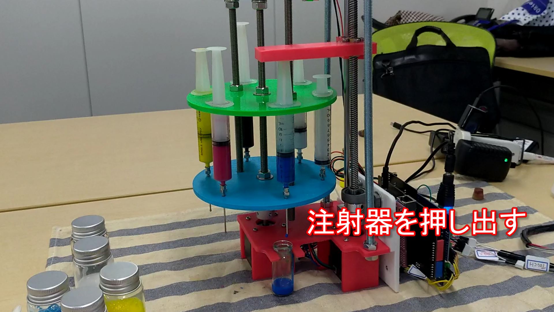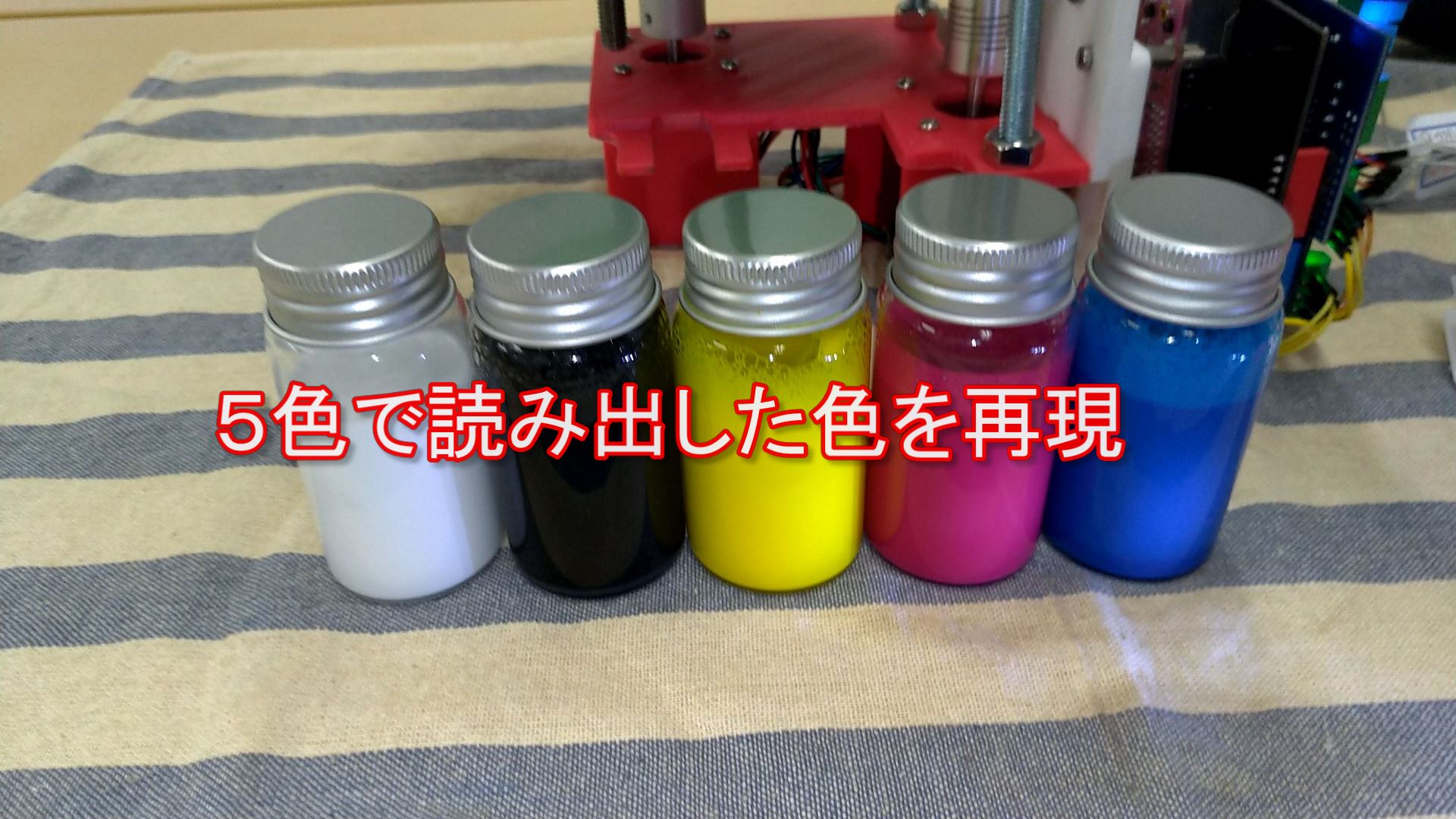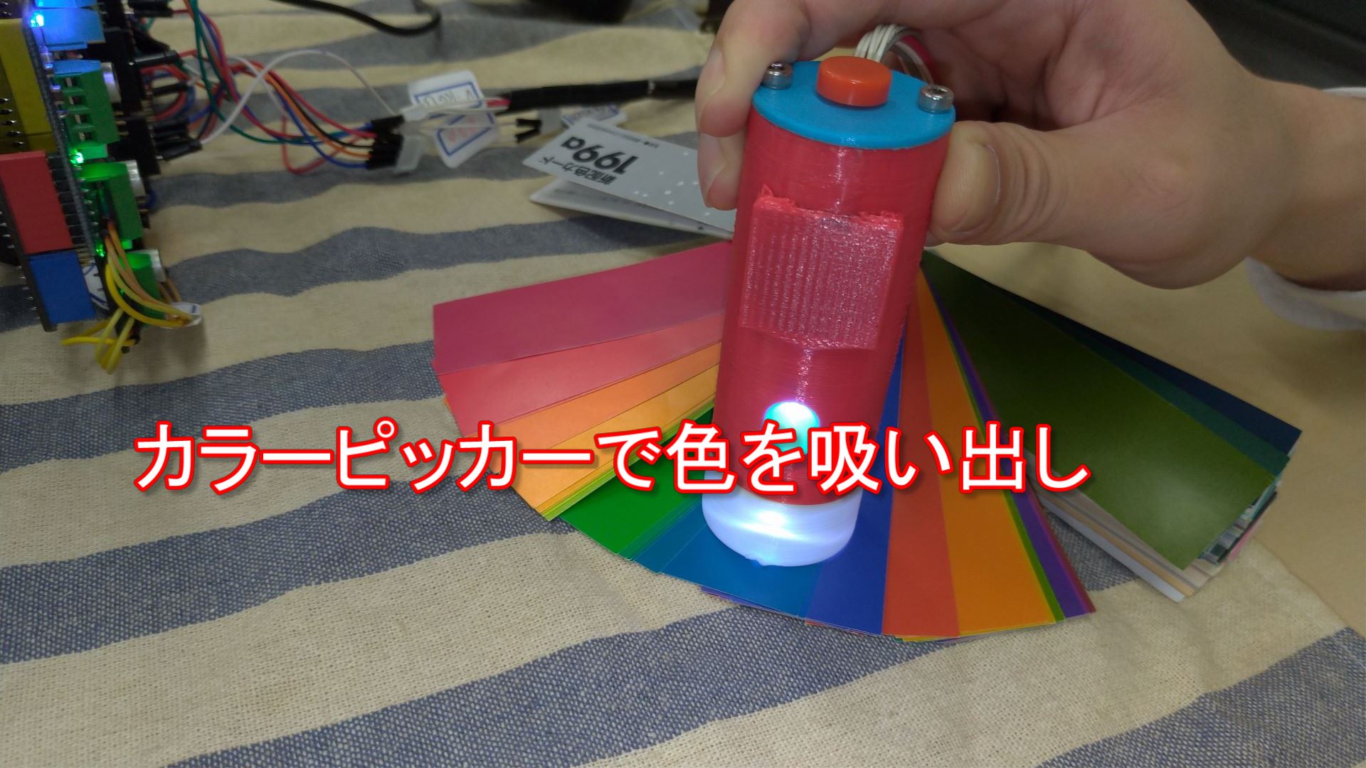 デジタルの色読み取りと、アナログな混色、3Dプリンタを使ったオリジナルメカの動きは遊び心をくすぐります。