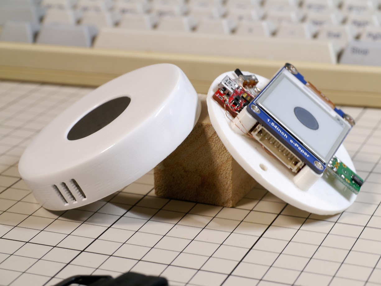 空気中のCO2濃度が高いと頭痛や眠気の原因になります。この.senseがお部屋にひとつあれば、一目見るだけで換気が必要かどうかが分かります。ディスプレイ中心の黒い円の大きさでおおよそのCO2濃度を表しており、数字を読み取る必要はありません。加えて、一定の値を超えるとアイコンで警告する機能もあります。大きさは直径65mm程度と小型なので、気軽に設置することができます。