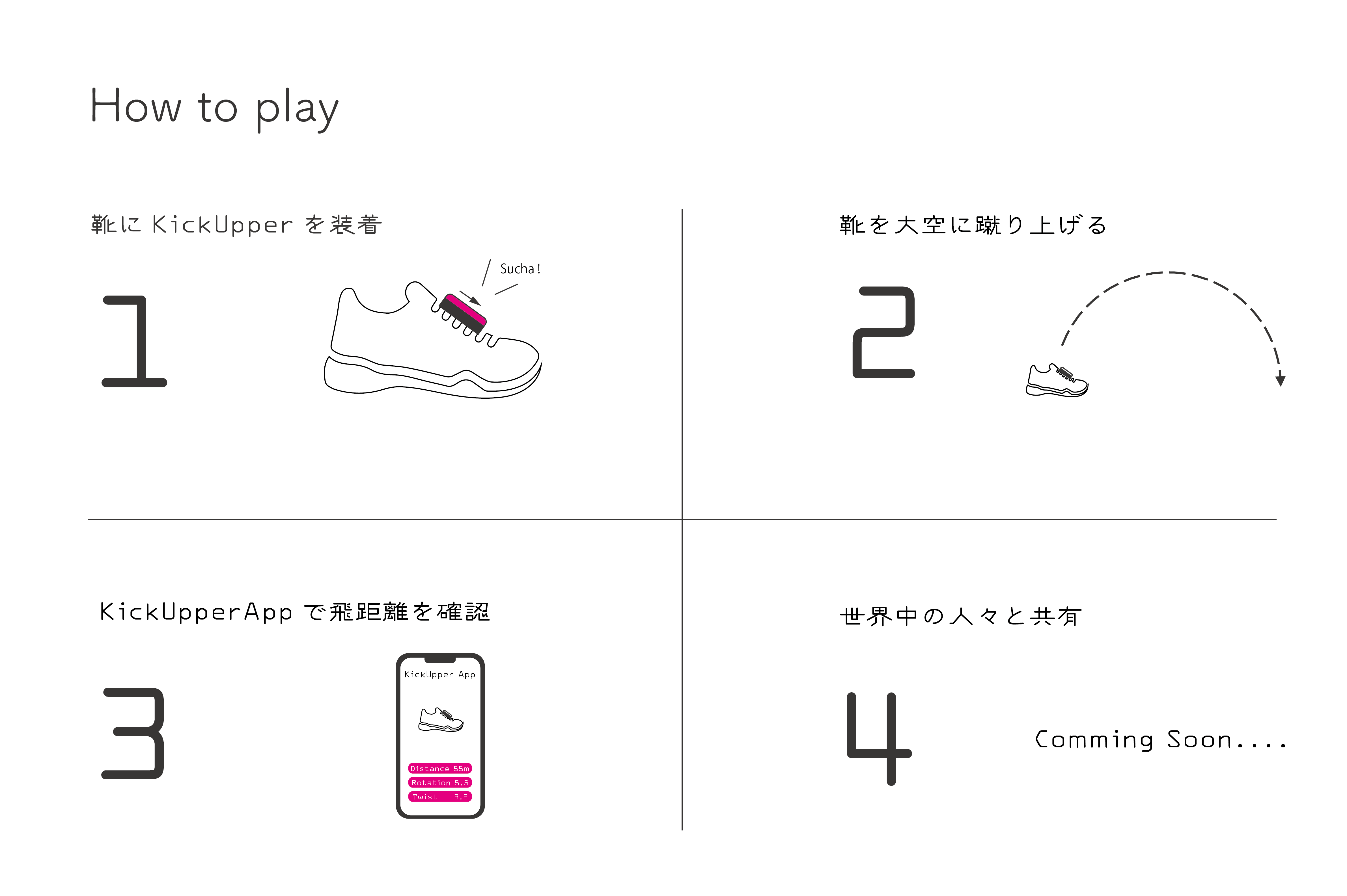 靴飛ばしのスコアを世界中の人と共有できる機能を提供します。また、幅跳び、高跳び、反復横跳びなど子供の頃に夢中になったアクティビティへの対応を目指します。