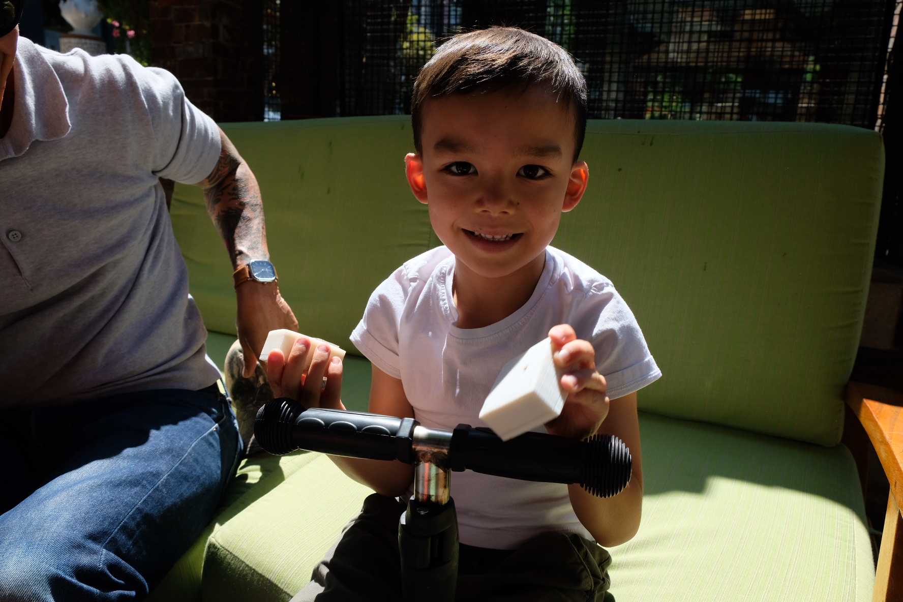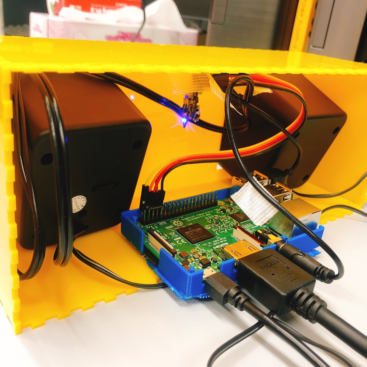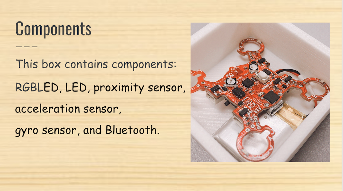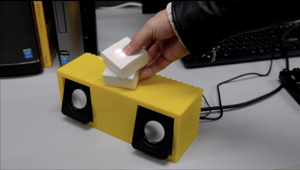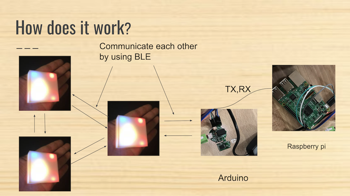 親機としてRaspberry Piを使っており、音楽を流 したりすることも可能。ブロックには、LED、近接センサ、加速度センサ、ジャイロセン サ、Bluetoothを内蔵している。