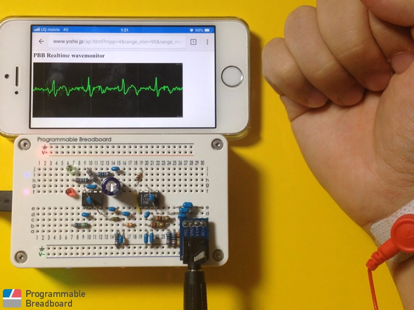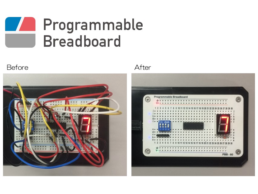 Programmable Breadboard(PBB)は配線いらずのブレッドボードです。PC上で作成した回路をPBBに転送するだけで、回路が実現できます。またPBBは、電源供給機能や、信号生成・測定機能も搭載しているので、PBBひとつで回路の試作ができます。もちろん、アナログ信号の取り扱いも可能です。