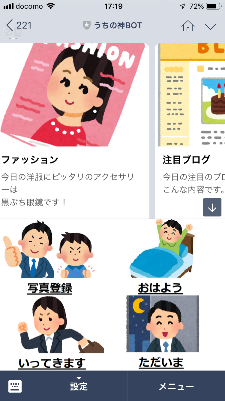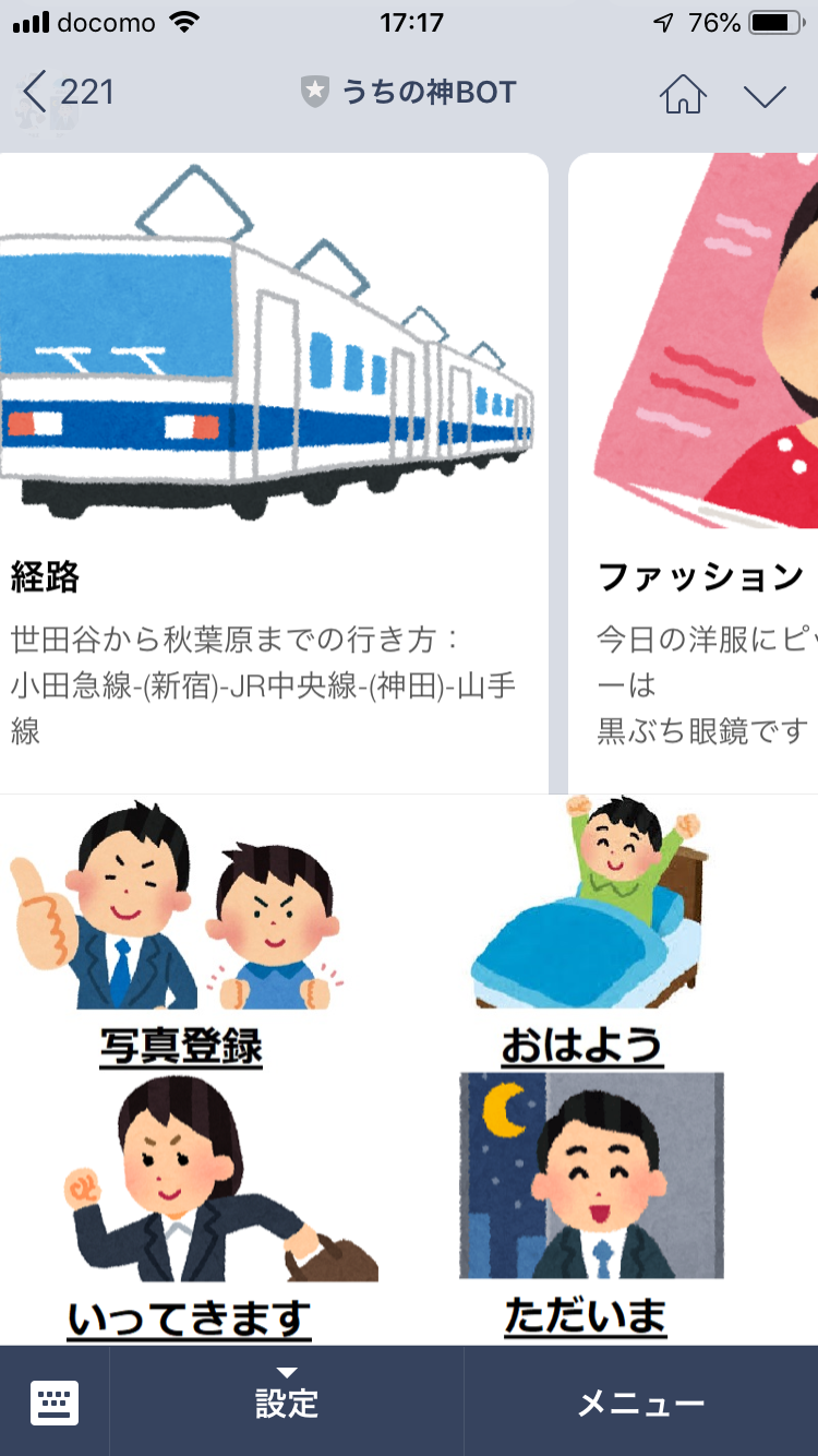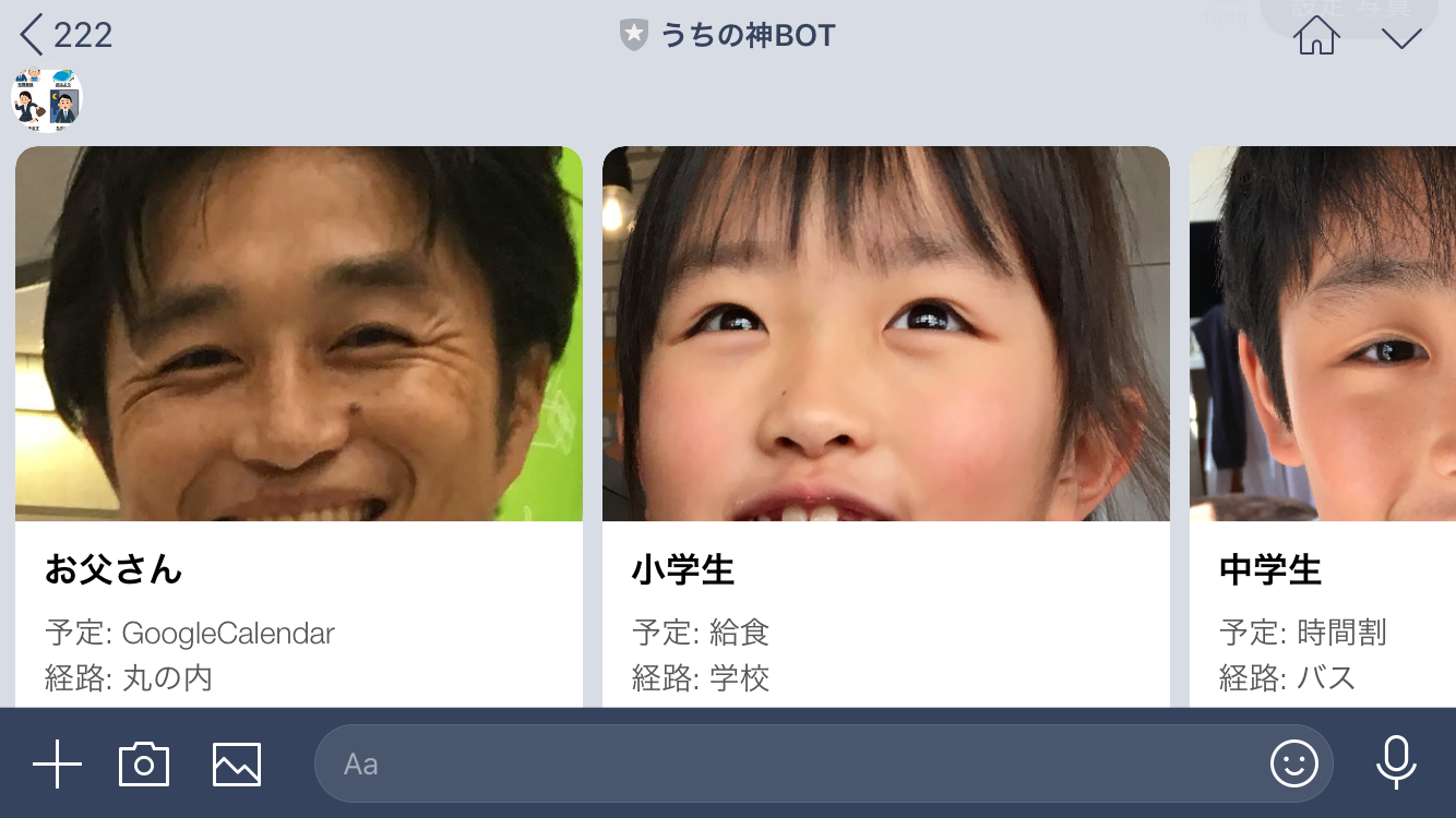 BOT上で、写真の登録や行き先、好みなどを設定でき、簡単にスマートスピーカーを使う事ができるようになります。