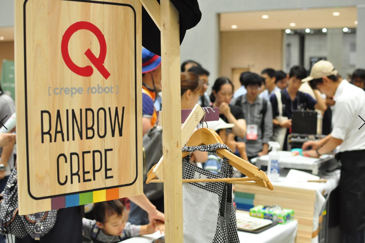 そんなクレープロボット「Q」の特徴を最大限に利用することで、鮮やかな虹色クレープが出来ました。