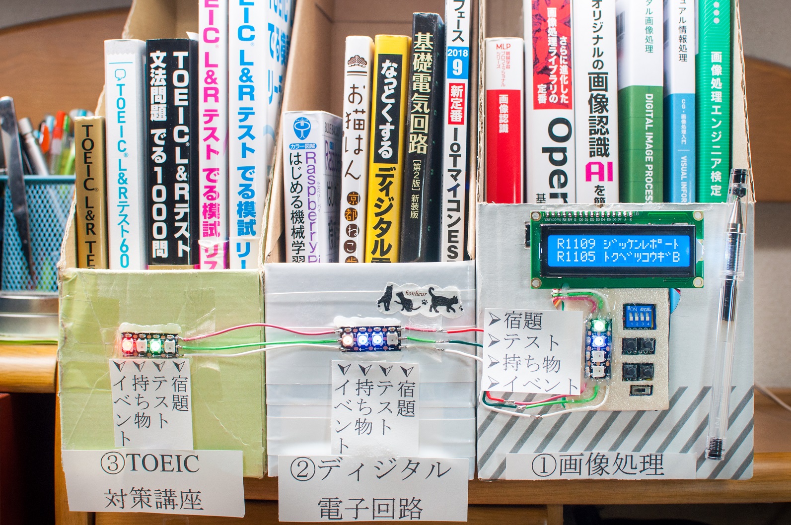 Google Calendarに予定を登録していくだけで, Study# は各教材のイベント情報を管理してくれます.イベント数や直近イベントの近さによってLEDの表示色を変えることで,視覚的に簡単に状況を知ることができます.学生はその表示に従って,社畜のごとく勉強に取り掛かるだけです.