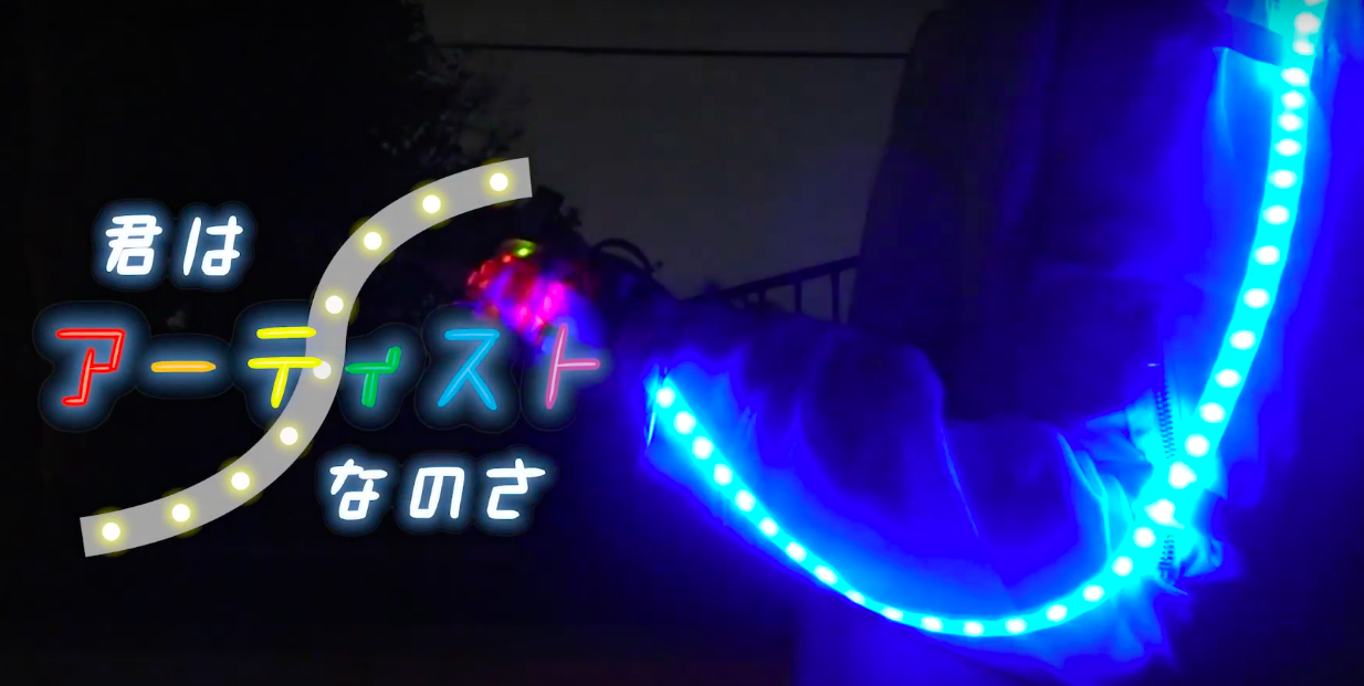 女。手の動きに合わせてLEDが光るプログラムを担当。即興ダンスLEDを担当。君はアーティストなのさのロゴ作成者。