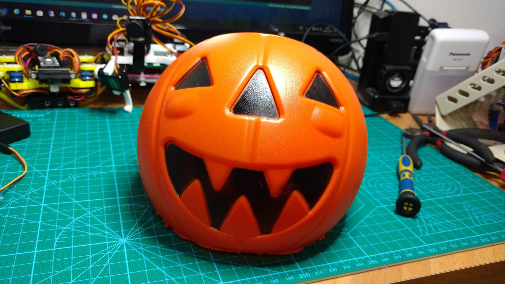 3Dプリンタがあれば、簡単に作ることができる四足歩行ロボット「よつあし」にハロウィンバケツをかぶせて見ました。
