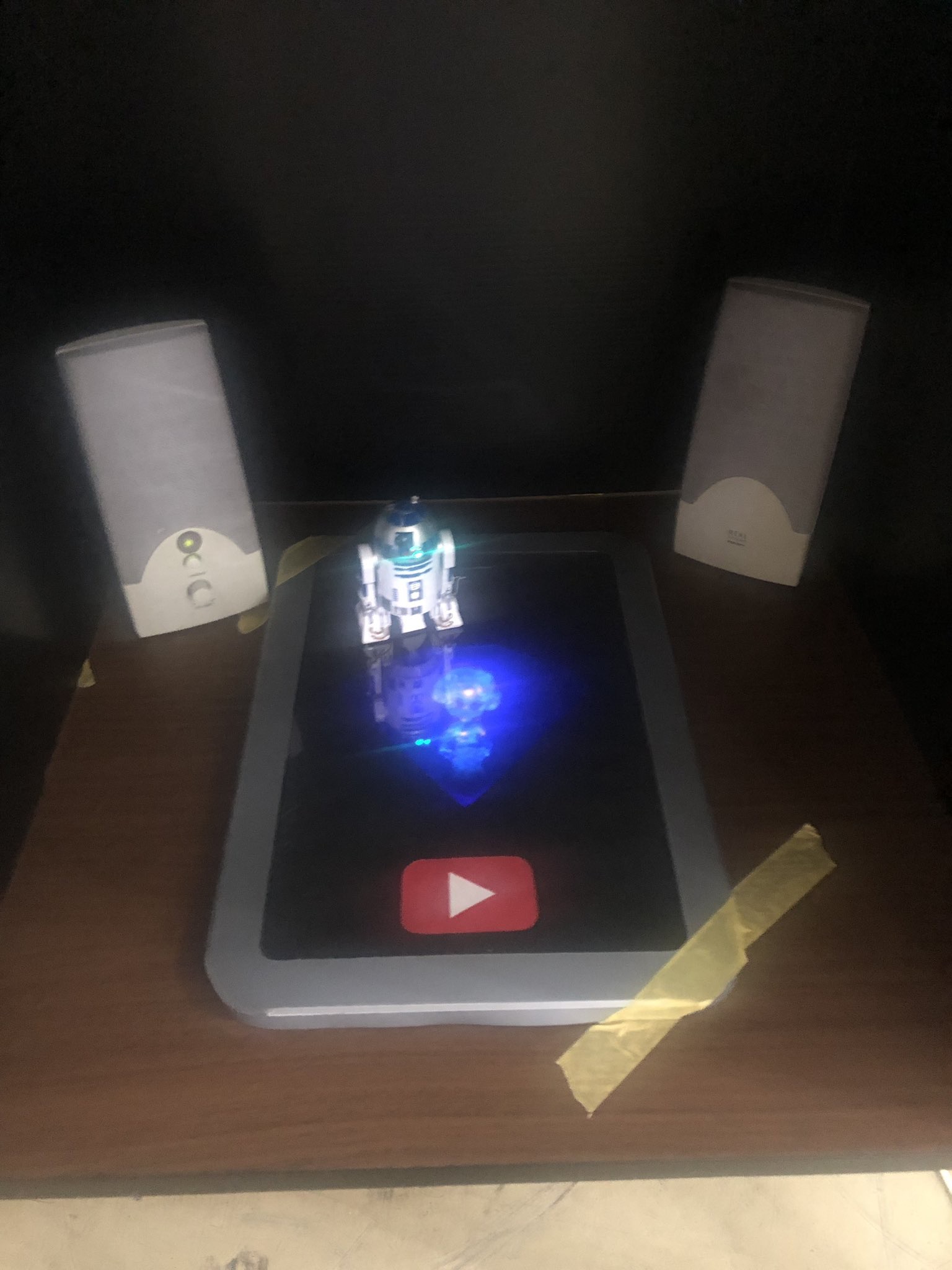 机の上に置かれたタブレットの再生ボタンを押すとロボットのランプが点灯し、タブレットの上の何もない空間に青白く光るレイア姫のフィギュアの立体像が浮かびあがり、メッセージを喋り、消える。
