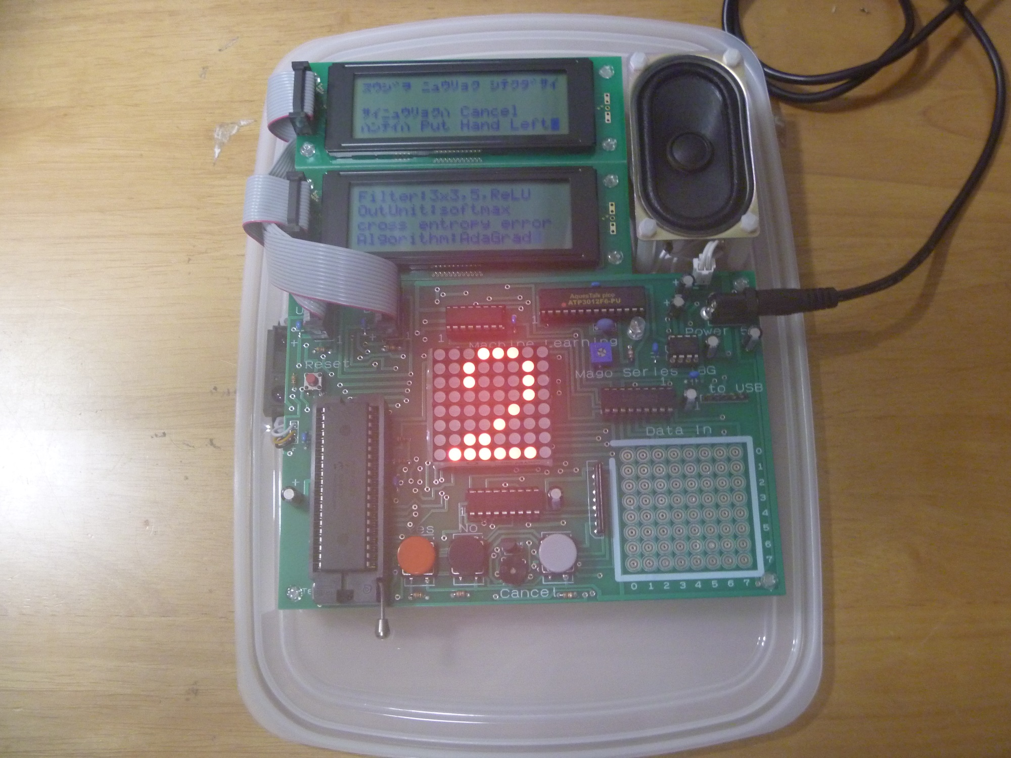 本電子ゲームは、教師あり機械学習の「畳み込みニューラルネットワーク(CNN:Convolutional Neural Network)」を使った数字認識を電子工作にしたものです。