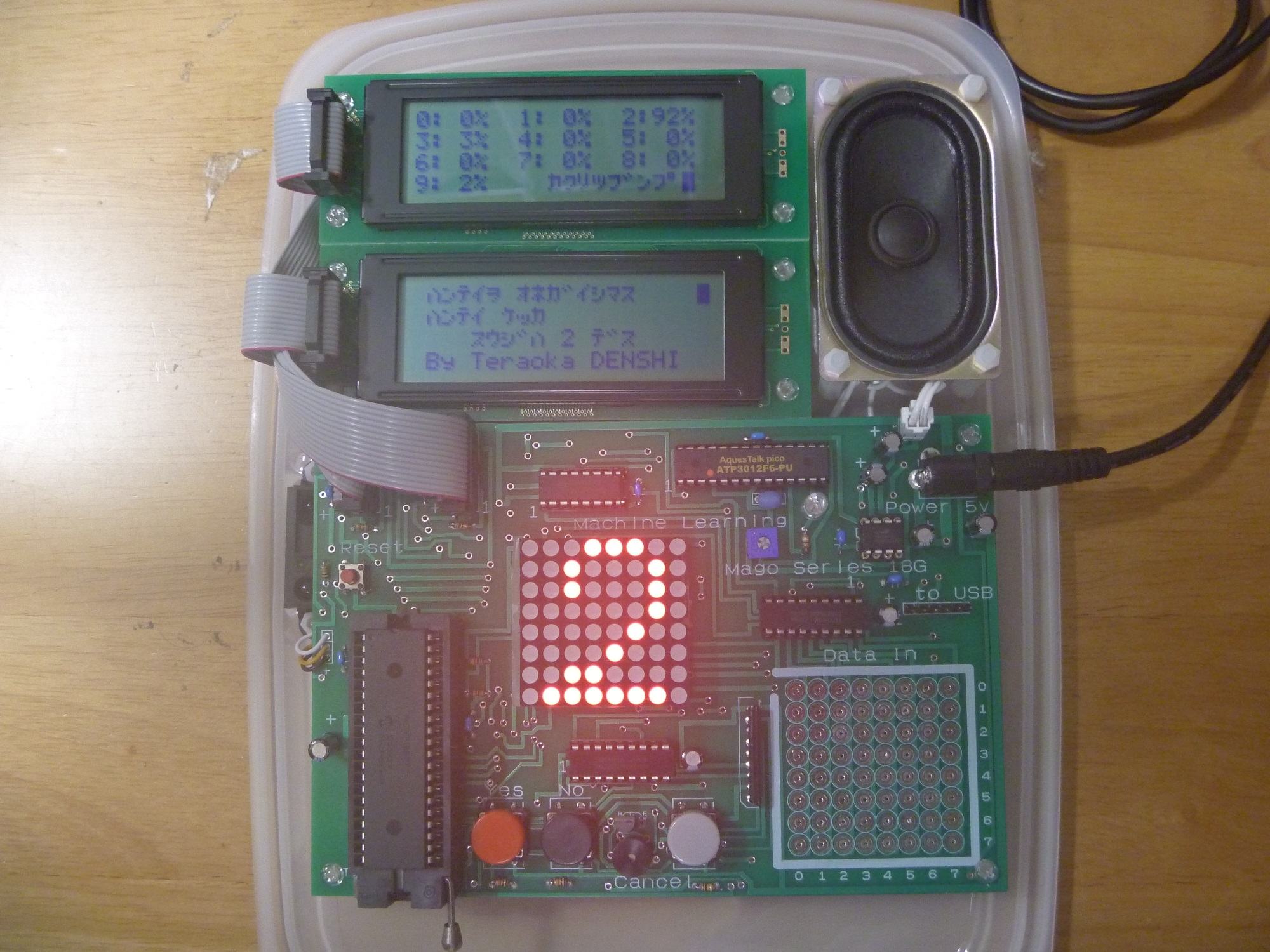 音声案内に従って数字を入力すると電子ゲームが認識します。認識した数字は、確率分布で表示されます。もちろん入力数字の最終判断は人間です。