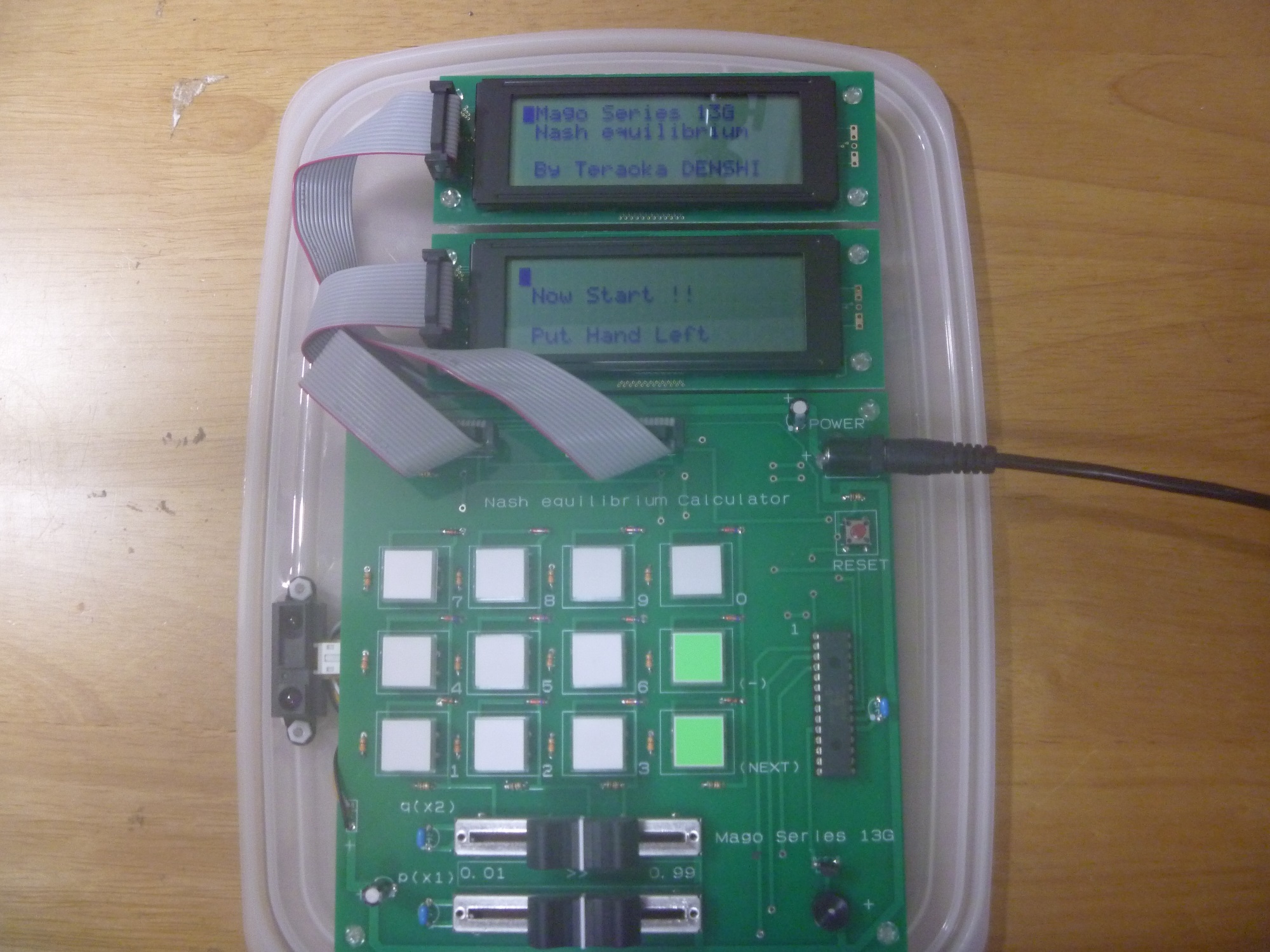 本電子ゲームは、ゲーム理論の「ナッシュ均衡」を電子工作にしたものです。