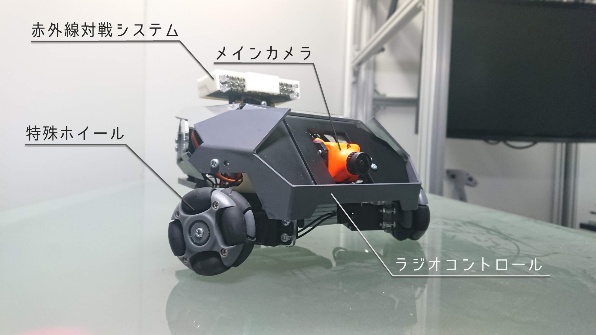 無線操縦されるロボットは体験者が直感的に操作できるよう、真横にも移動可能な特殊ホイールを採用しています。移動速度を敢えて抑えることにより、ある程度狭い空間でも遊べるようになった他、操縦の「本物感」を増しています。