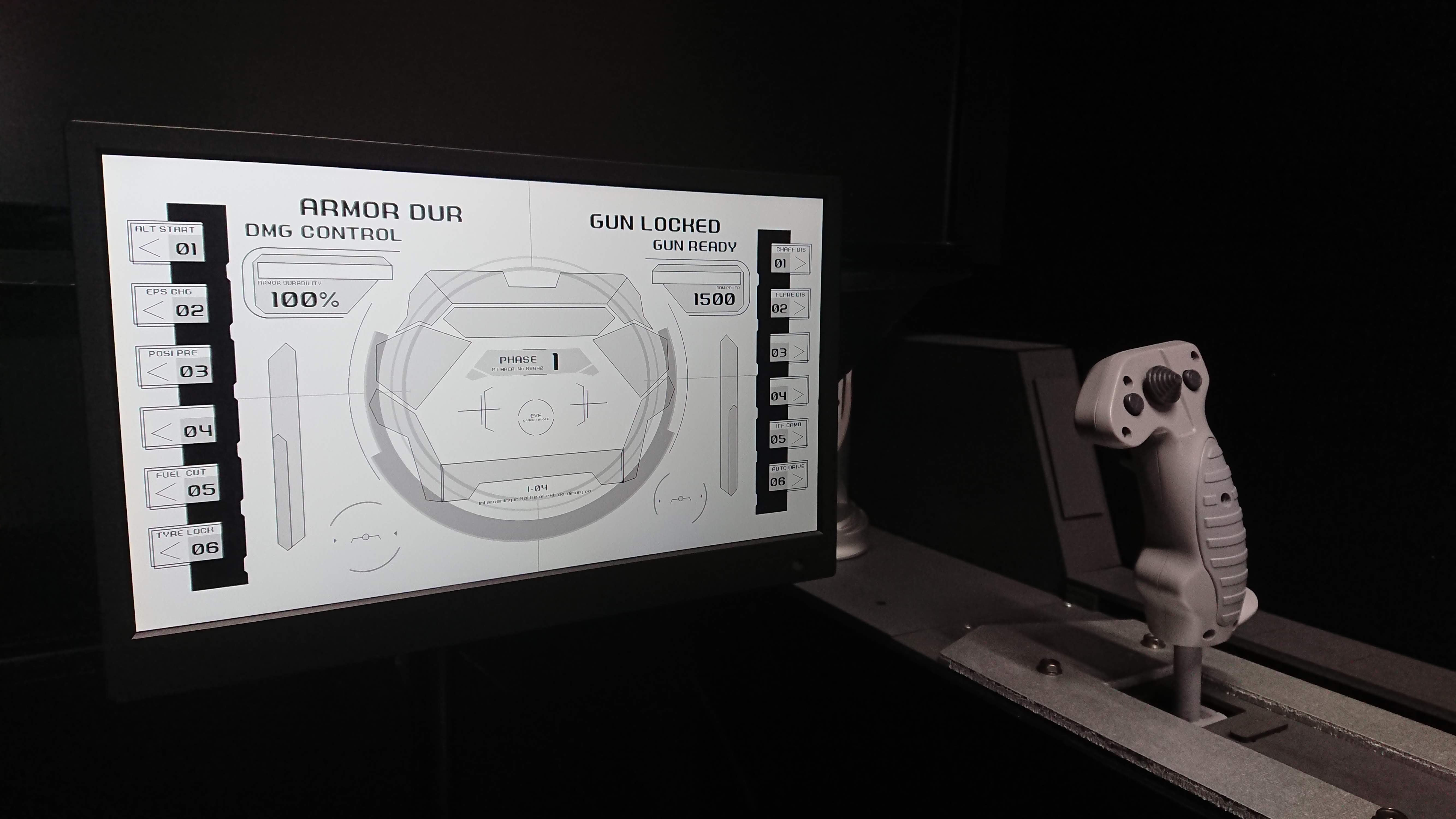 より多くの展示会へ出展する為に新規製作された今回の半開放型コックピット筐体(画像2枚目)は、体験者の没入感を損なう事無くプレイ中の様子を他の方が後ろから見ることが可能となり、より多くの人と体験を共有できます。