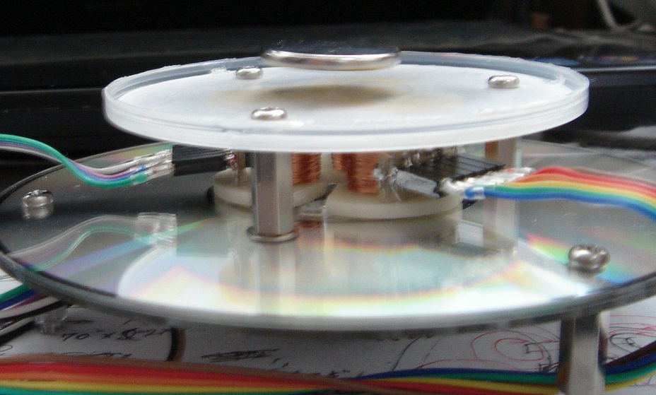 なお、動画ではUFOの形をしたものが浮上していますが、このUFOの底にはΦ23mm×2.3mmの円形のネオジム磁石が張り付けてあります。