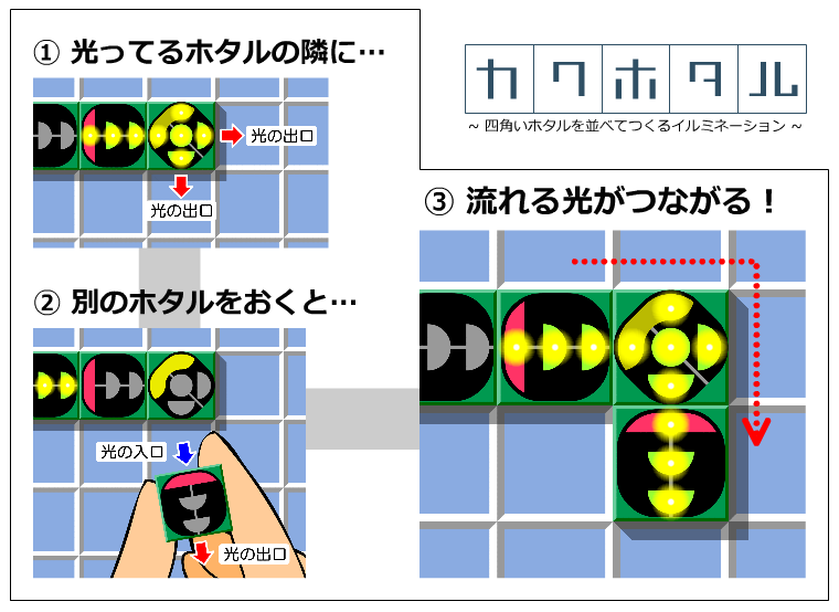 これまでほぼ眺めるだけだったイルミネーションの光ですが、本作品では様々な光の動きを作り出して楽しむことが出来ます。