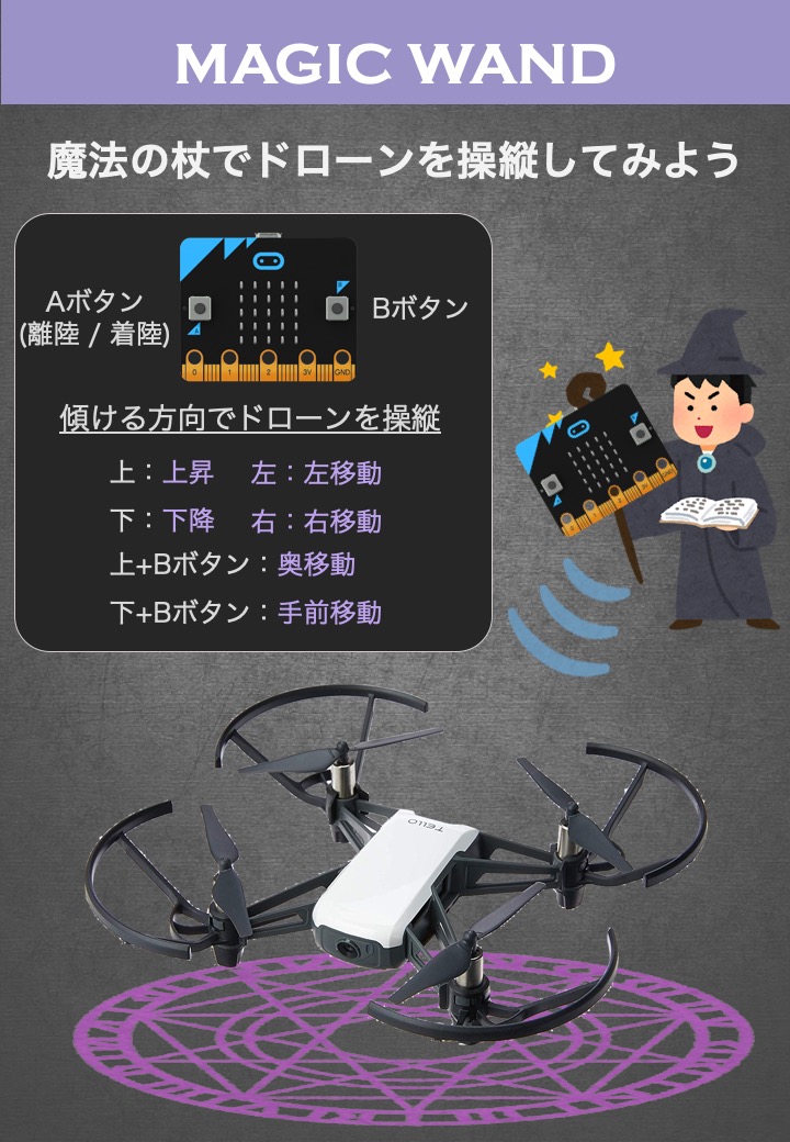 誰でも簡単に まるで魔法使いになったように ドローンを操作することができます。