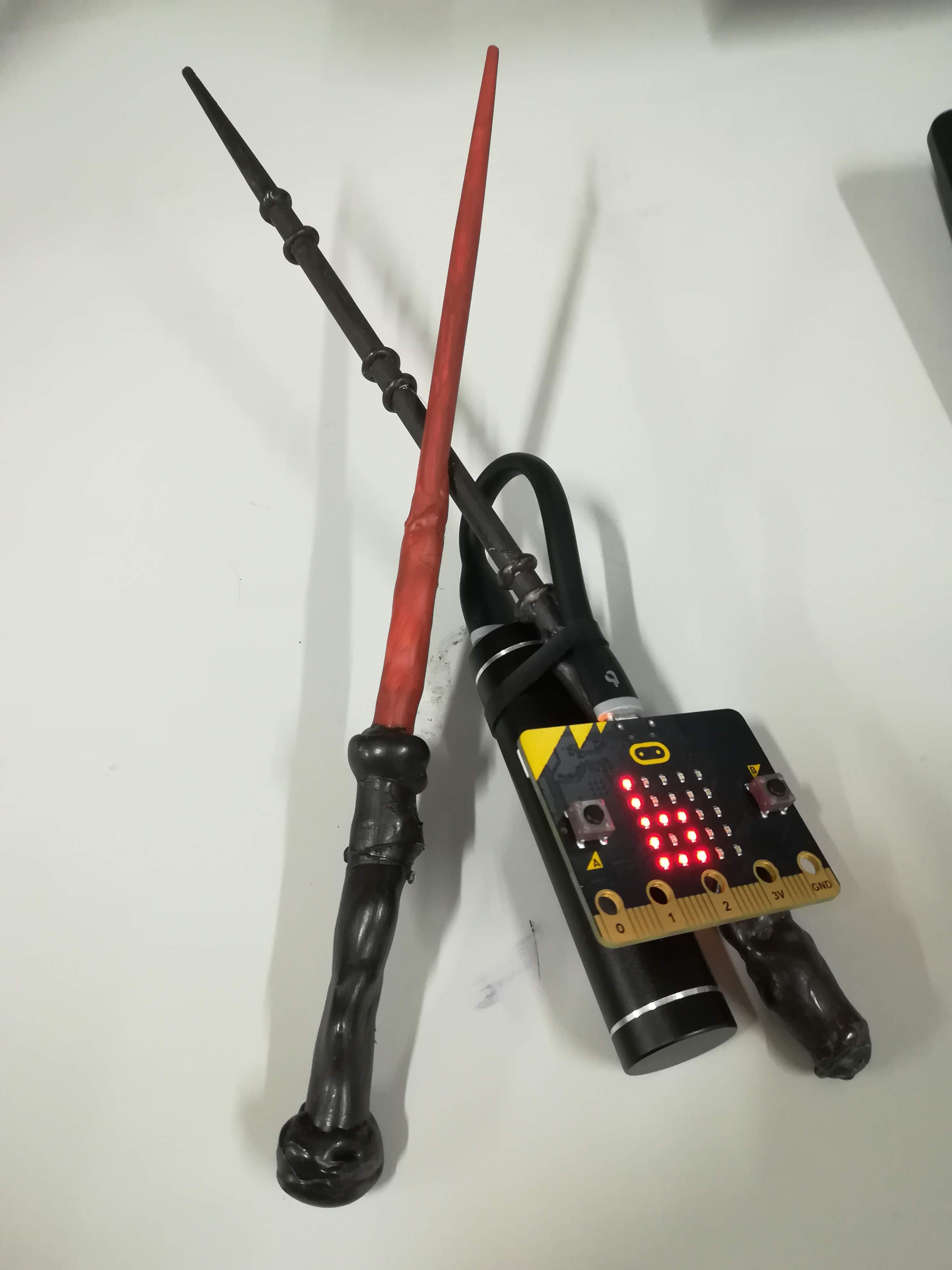 トイドローンTelloを魔法の杖風デバイスで制御できる作品です。