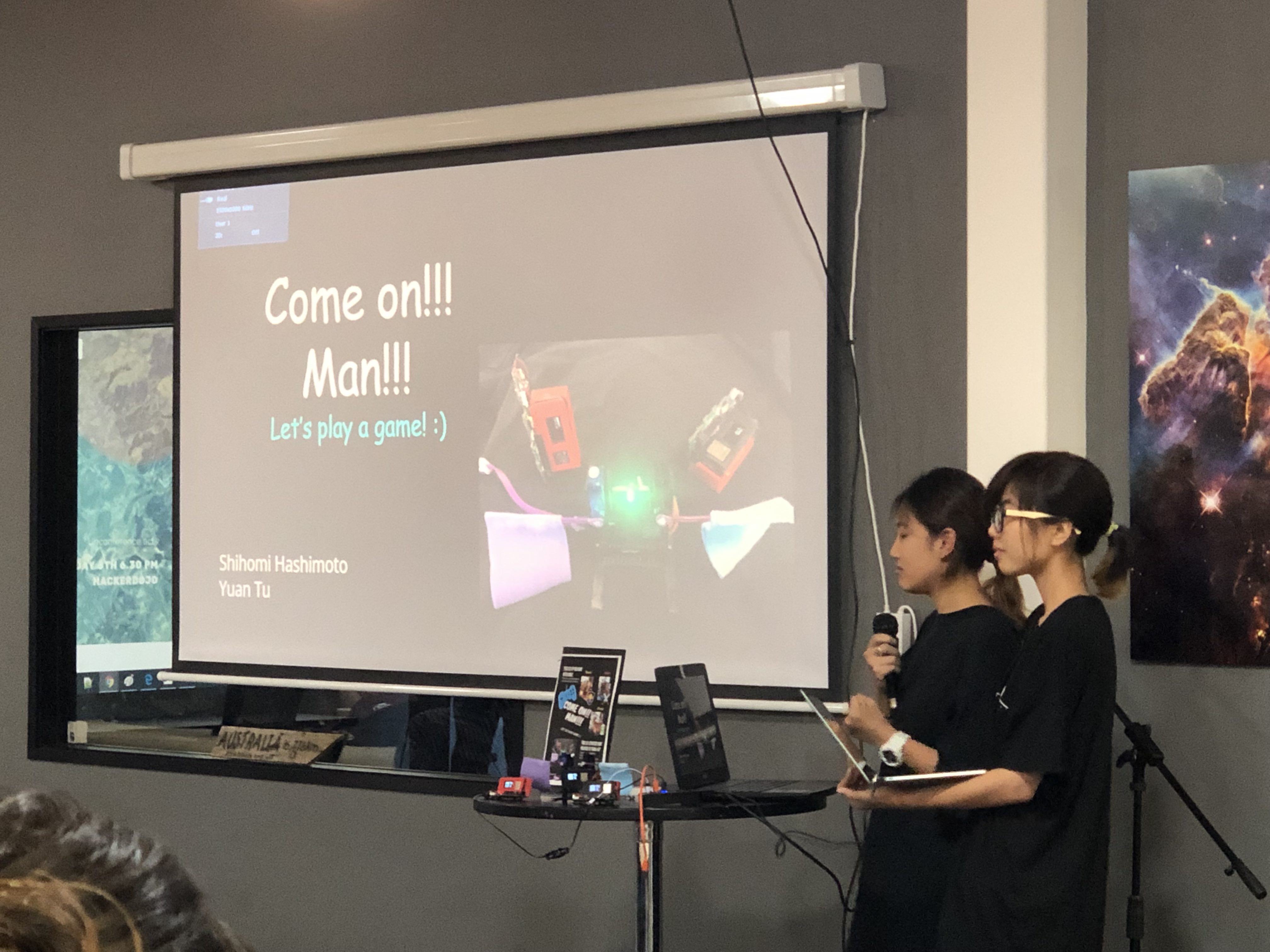 Our project ‘come on man’ is a simple strategy game that changed from a traditional Japanese game. We have handles for doing different gestures as inputs, also we have screens for showing the game states. To play this game, we need to connect to the internet and pay attention to the instructions on the screen.