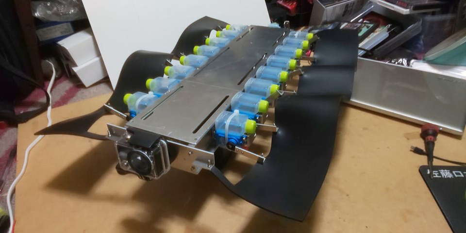 片側8個(両側で16個)の防水サーボーでヒレを動かしてます。