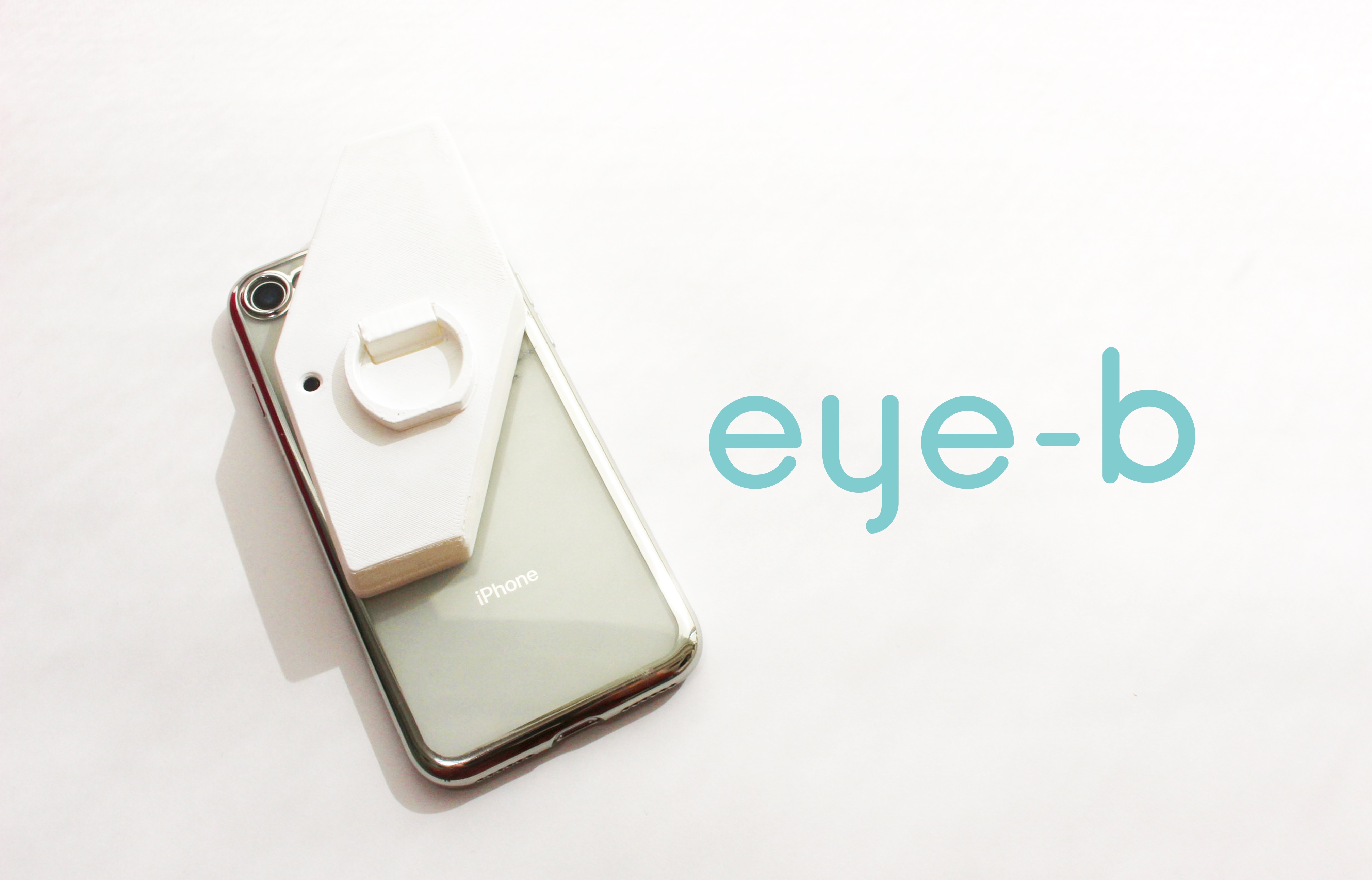 Eye-bは「スマホ老眼を防ぐスマホアクセサリー」です。スマートフォンの裏に取り付けるだけで、スマホ老眼の原因となる「スマホの長時間・近距離の使用」を注意してくれます。