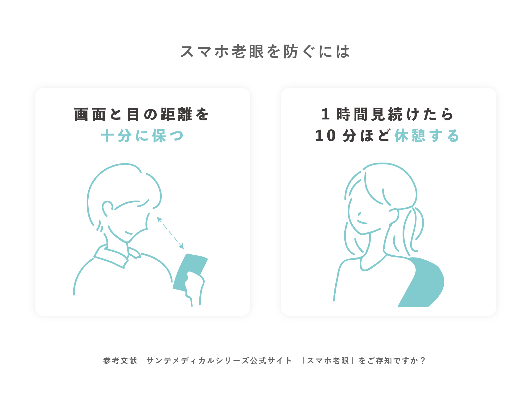 スマートフォンを「長時間・近距離」で使用することで目のピントが合いにくくなってしまうこと。