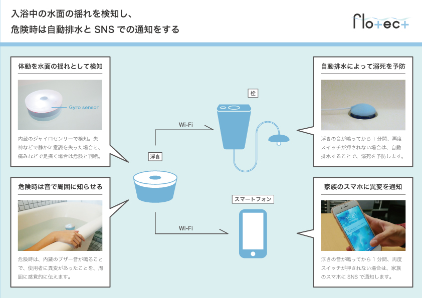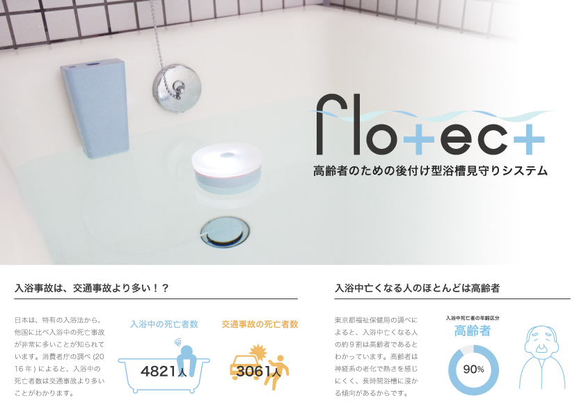 flotectは、高齢者の入浴中に多く見られる、浴槽内での事故を予防するプロダクトです。