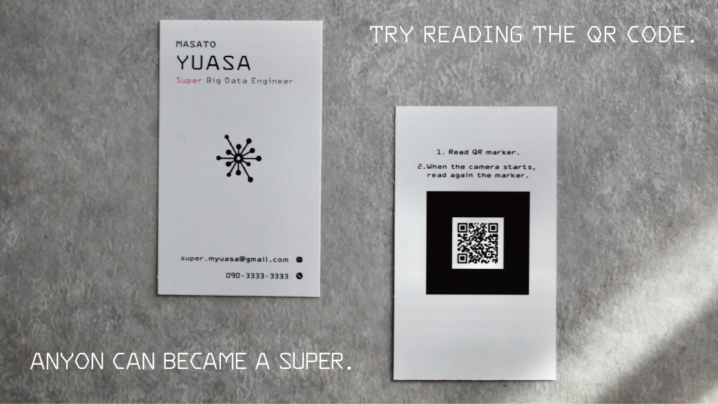 【概要】ASR(拡張超現実) 名刺は実際の自分を適度に盛れる名刺。ただのエンジニアはスーパーなエンジニアとなり、スマホからASR名刺を覗き込むと華麗なダンスを披露する自分がいる。本当かどうかはわからない程度に拡張された超現実。