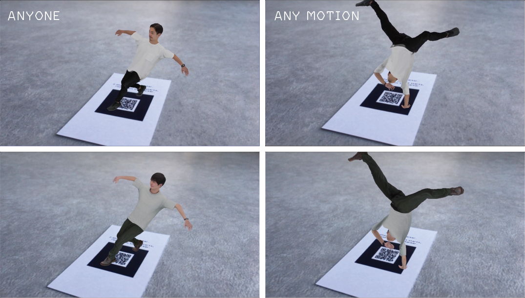 【技術】WebARを用いてアプリに頼らないでシームレスなAR体験を提供。フォトグラメトリにより誰でも超リアルな3Dモデルを生成可能。世界中に公開されているモーションデータを用いてあらゆる動きを実現。