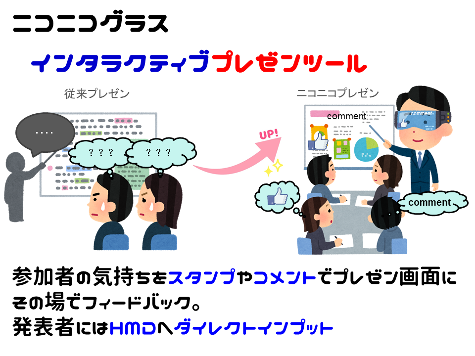 そんな課題を解決するためにスクリーン投影されたプレゼン画面をインタラクティブにするニコニコディスプレーを作りました。