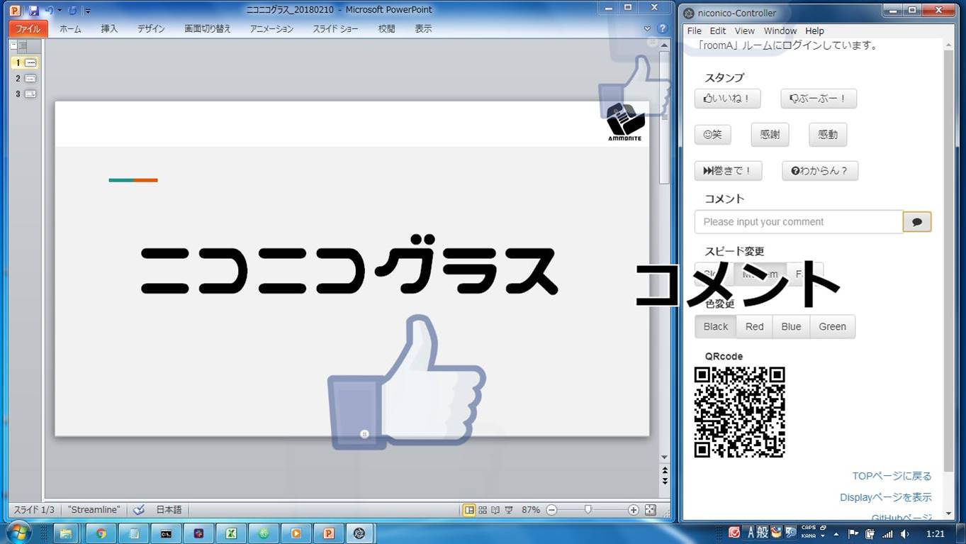 プレゼンター用にも、コメントやスタンプが表示されるヘッドセットを用意しました。