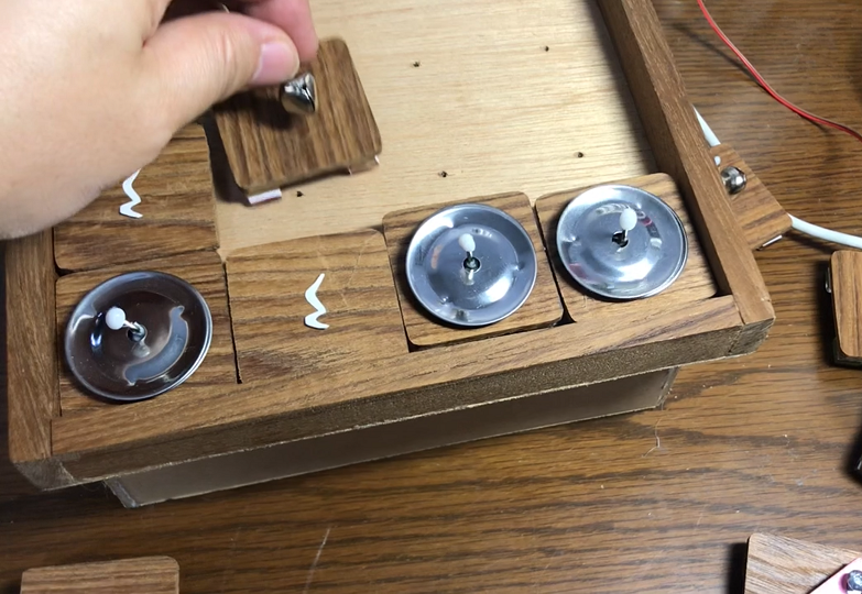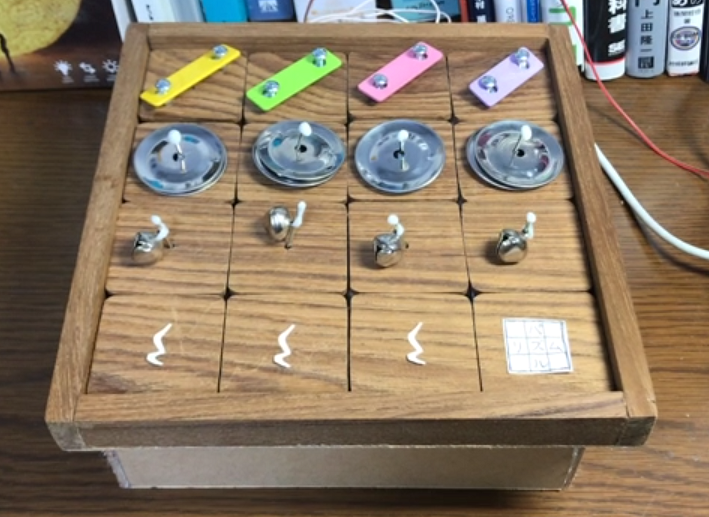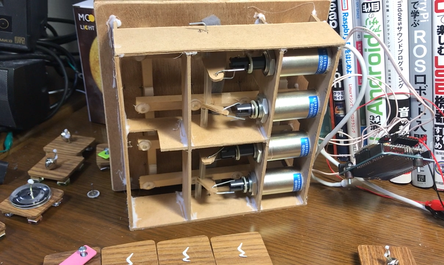 仕組みはソレノイドをArduinoで制御し、箱の下から針が出るようにして楽器のピースを鳴らします。