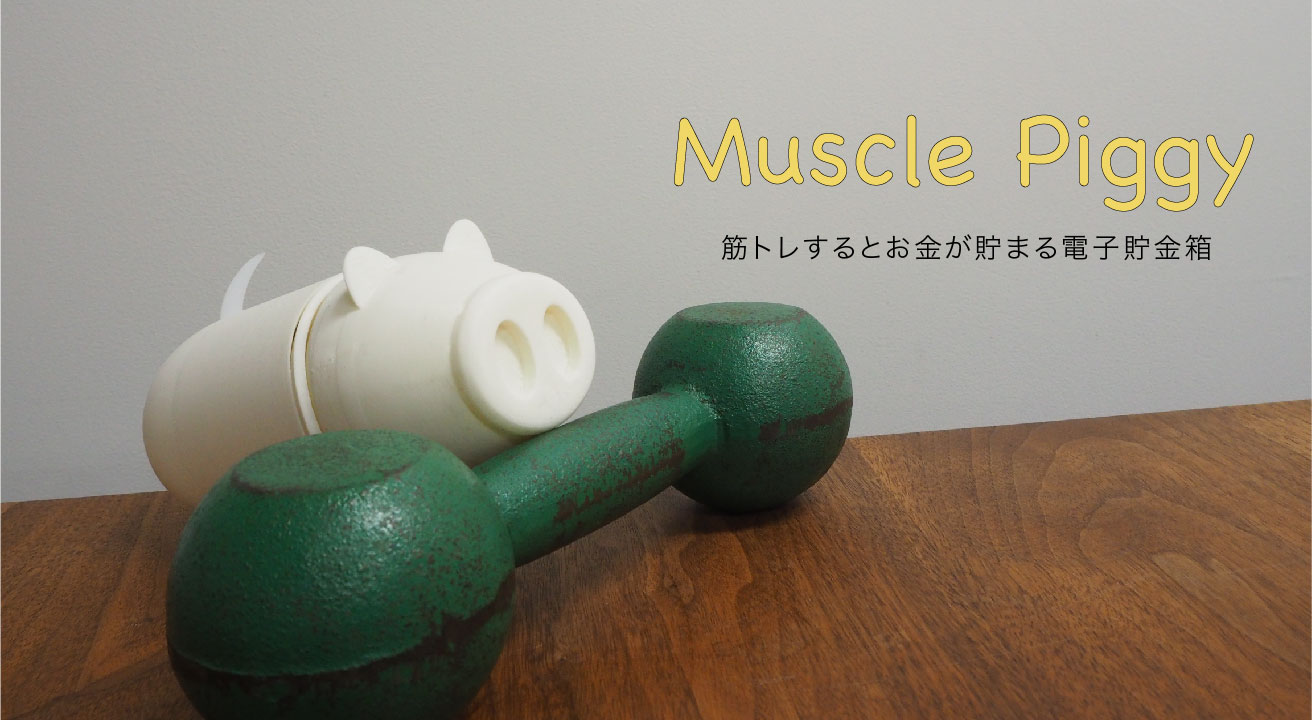 ダンベルを使うと電子マネーが貯まる貯金箱です。