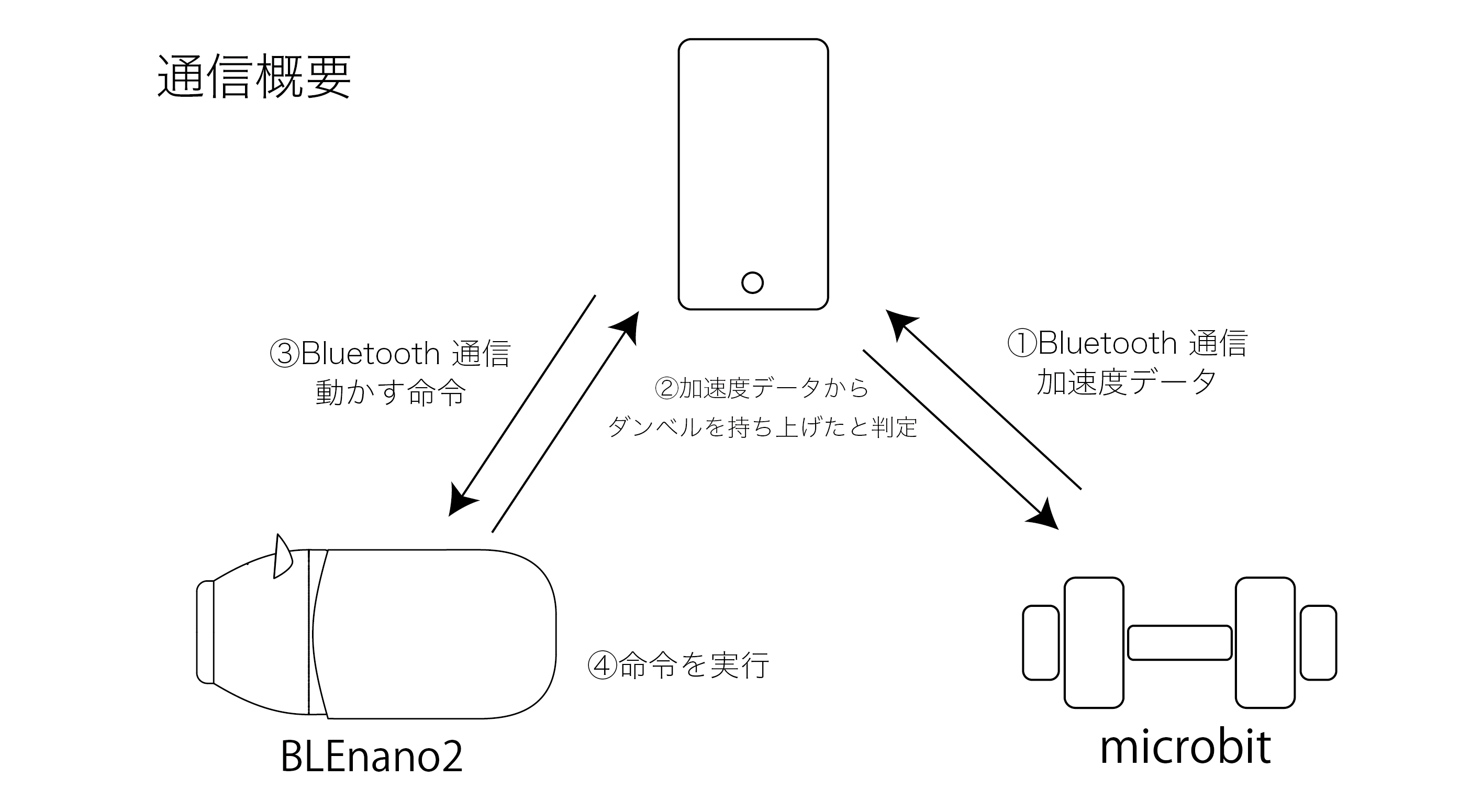 貯金箱はBLEnano2、ダンベルにはmicrobitを用いて開発しました。