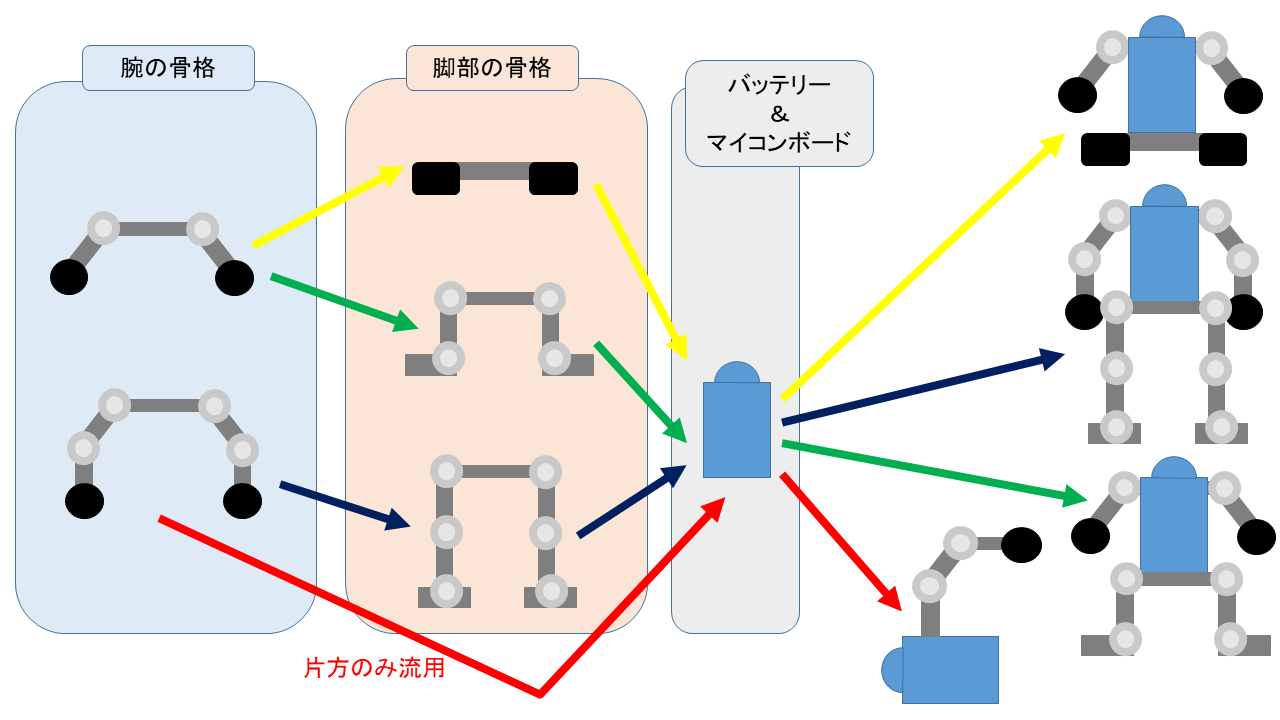 ロボットの構造に互換性と拡張性を持たせた結果、部品の流用で設計の手間や時間を省略することが出来たり、新しい部品や機能をすぐにロボットに実装しやすくなっていると思います。