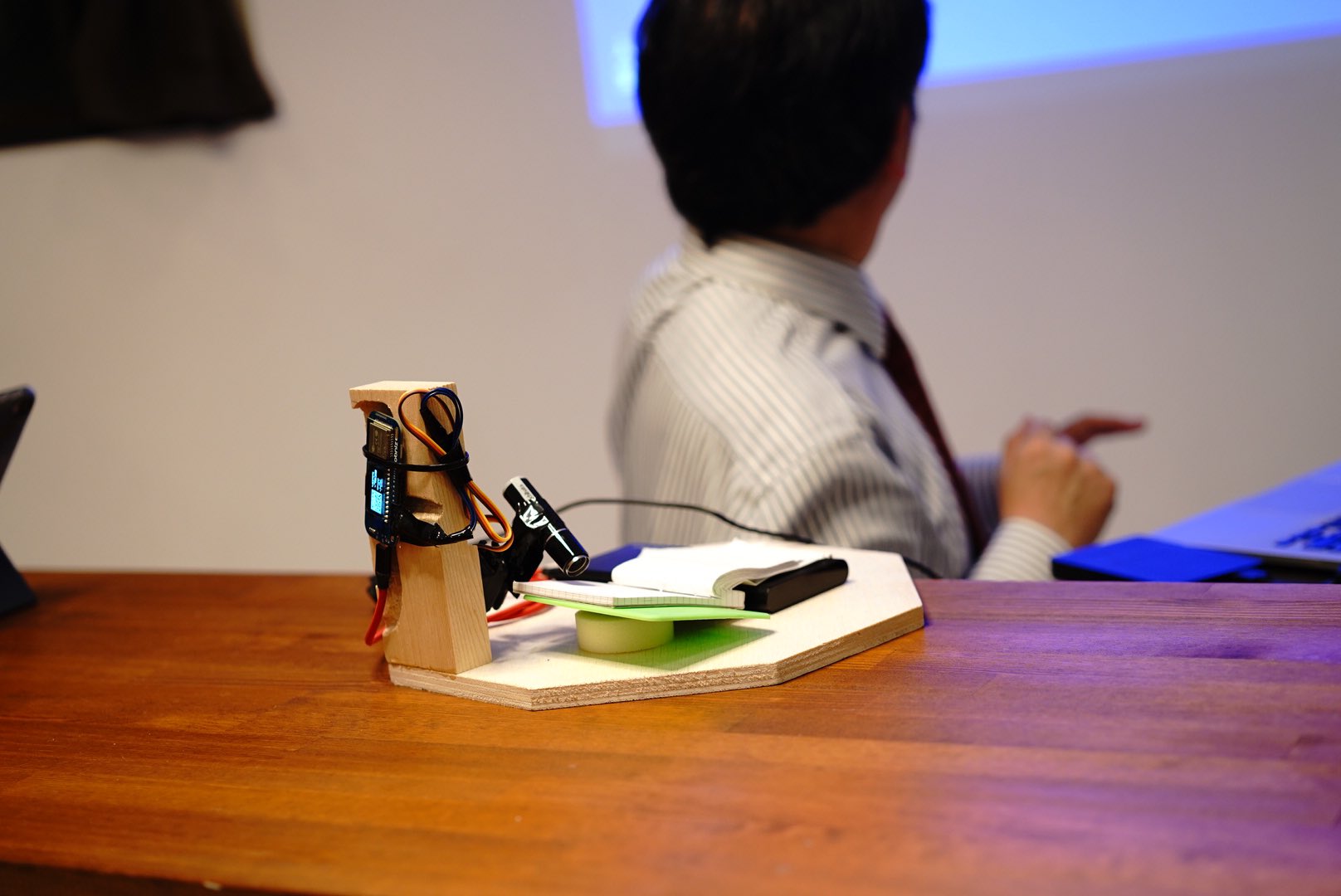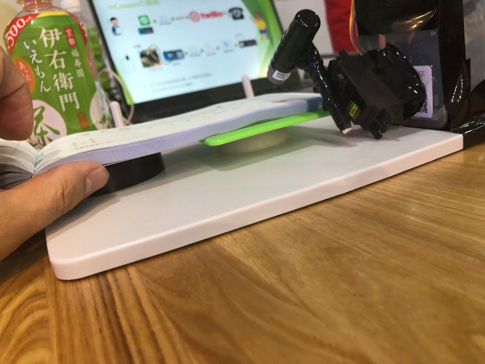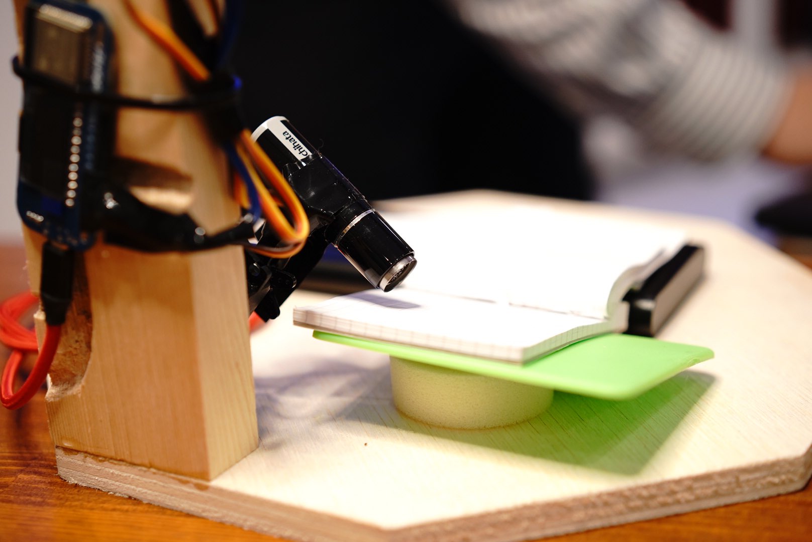 部下がリモートワーク中の上司に対して遠隔で書類にハンコを押してもらうロボットです。