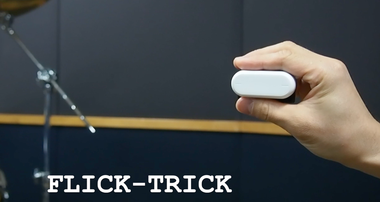 後付けデバイスはドラムスティックを使用するのに支障のない大きさと重さで、例えばスティックの先端部付近に取り付けられ