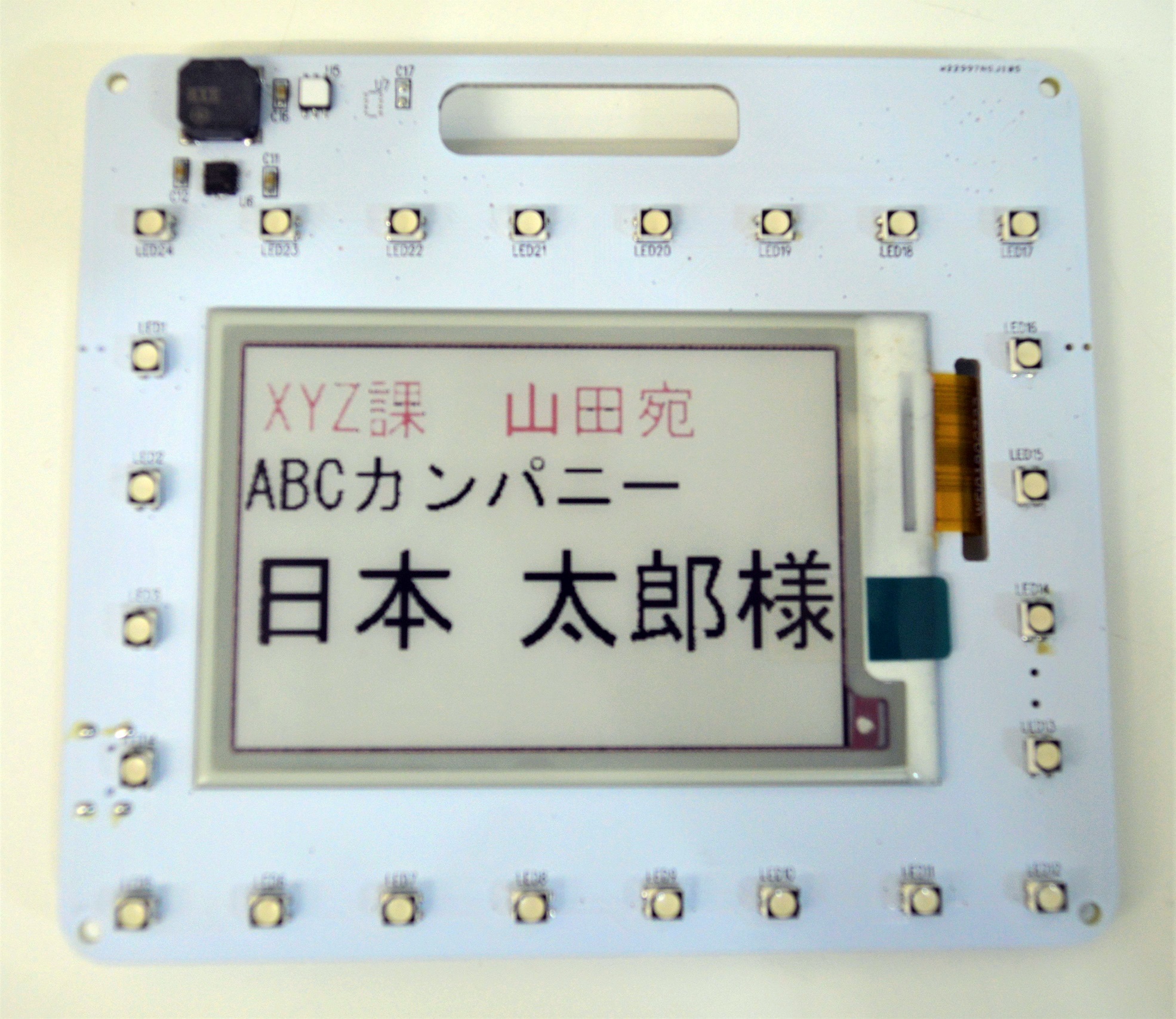 今回、こちらの資料を用意できなかった為、ビジネス向けに製作したBLEネームプレートを発表させていただきます。