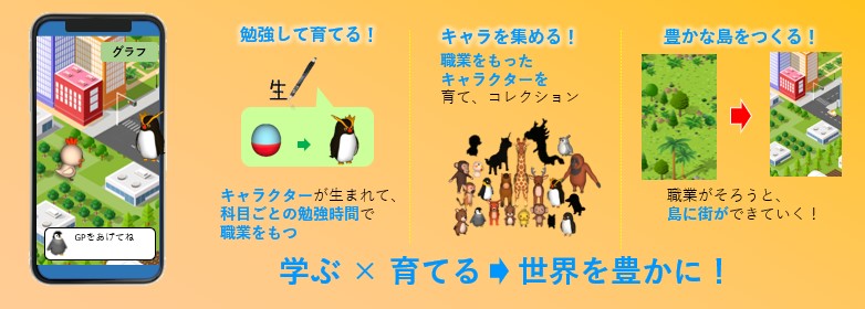 シャープペンシルなどへのアタッチメントで学習記録を残し、それを元にしたゲーミフィケーションで勉強することの意味を伝え、親や友達から励ましてもらえます。