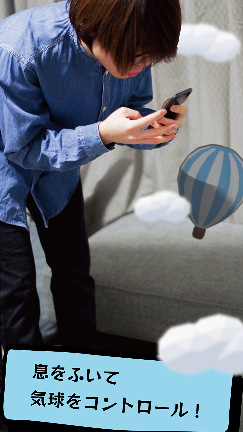 実際にスマートフォン越しに気球に「息」を吹きかけると、気球が移動します。