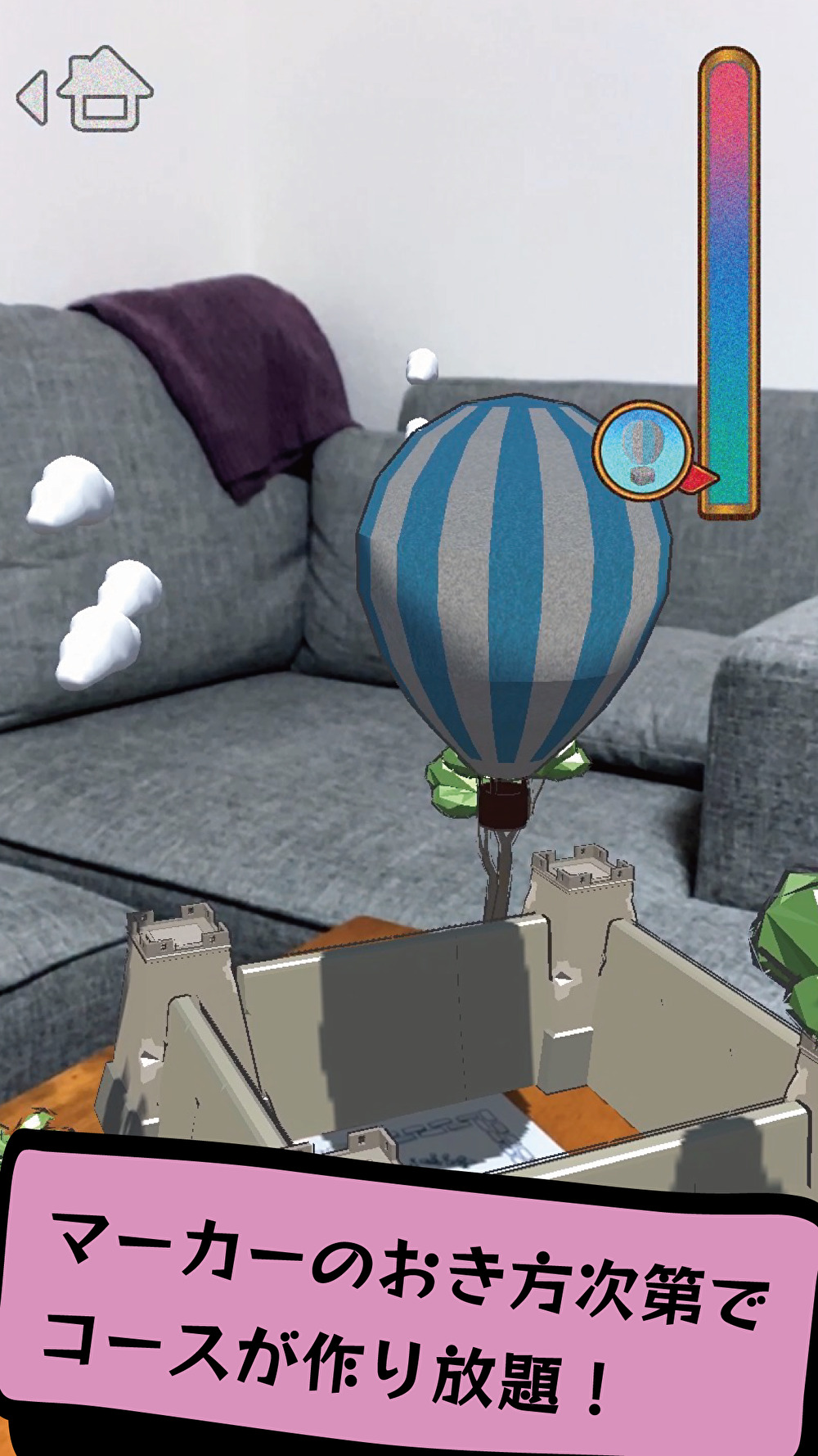 「ヘヤとカゼとバルーンと」ではマーカーを設置することで、ゲームのステージが完成します。