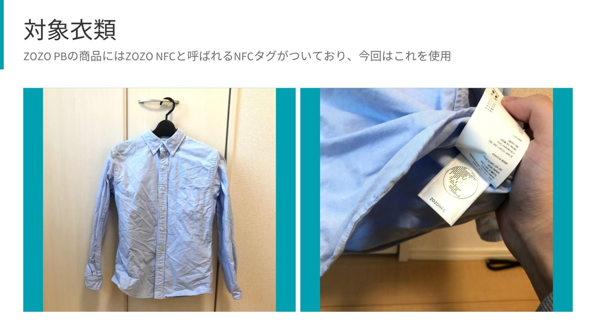 ・衣類にNFCタグを取り付け(ZOZOの一部製品などはもとからNFCタグが付いている)