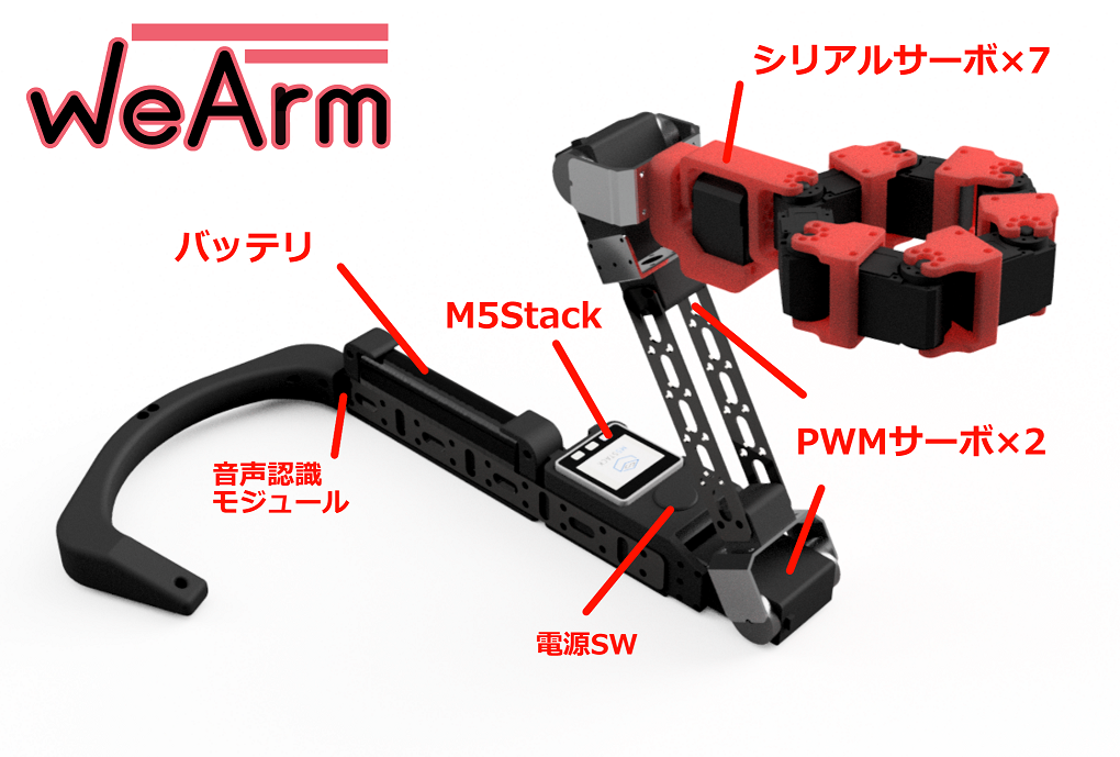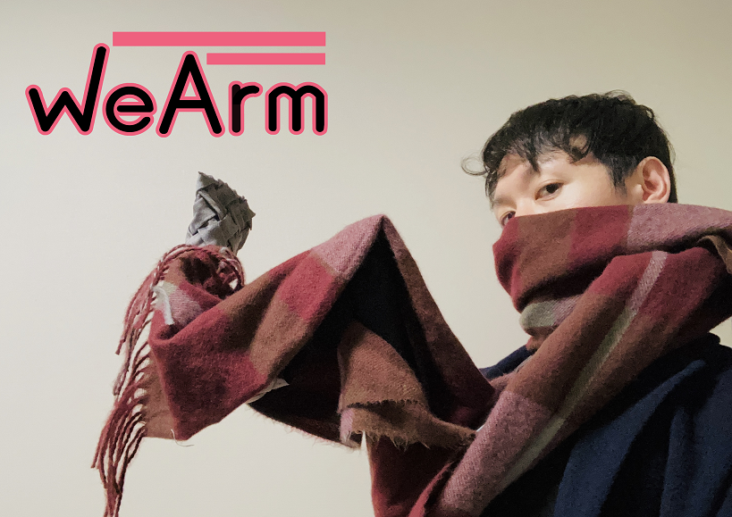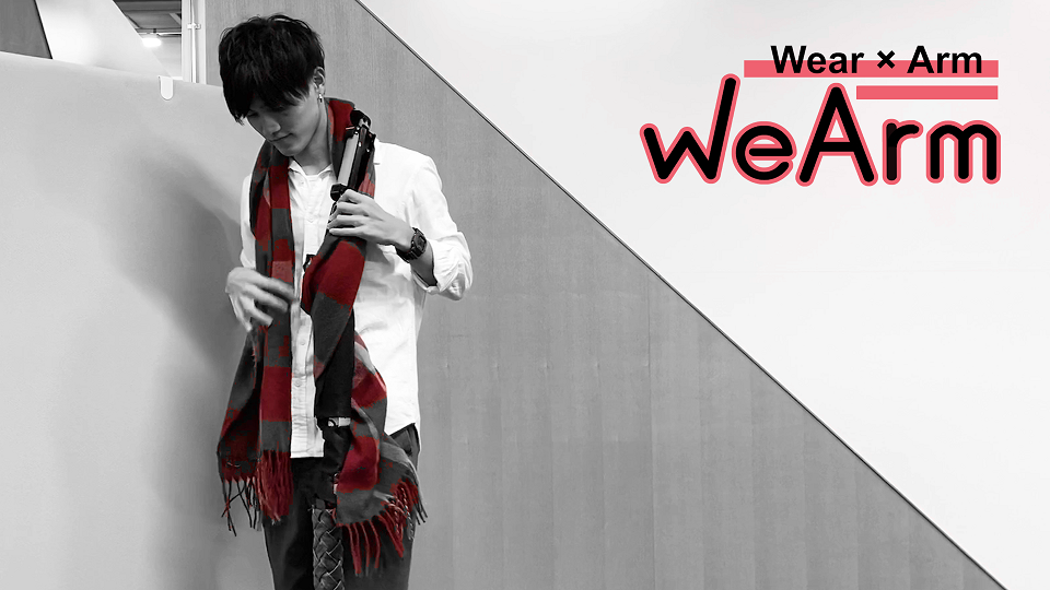 首掛け式のロボットアーム。ファッションとして着るロボット。 ファッションの一部として身に着け、自在に動くマフラーが日常生活をサポートしてくれる。 音声認識や予め学習したタスクで動作。ドリンクや傘などを保持できる。
