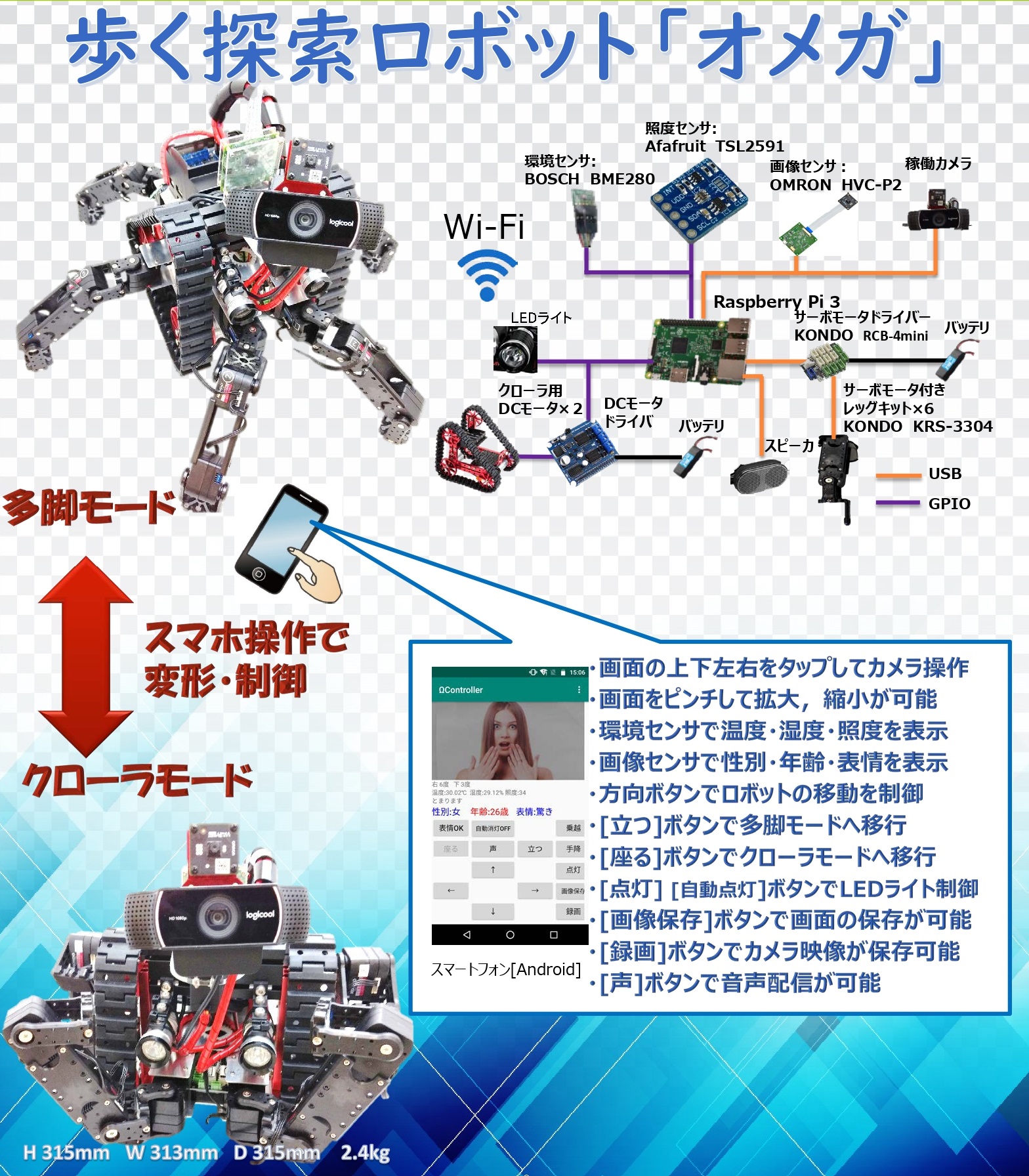 でWiFiを利用して操作でき、カメラからの映像を見ながら探索可能です.