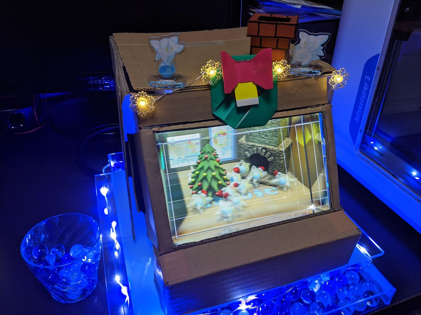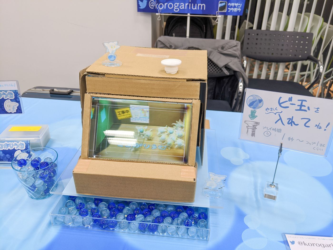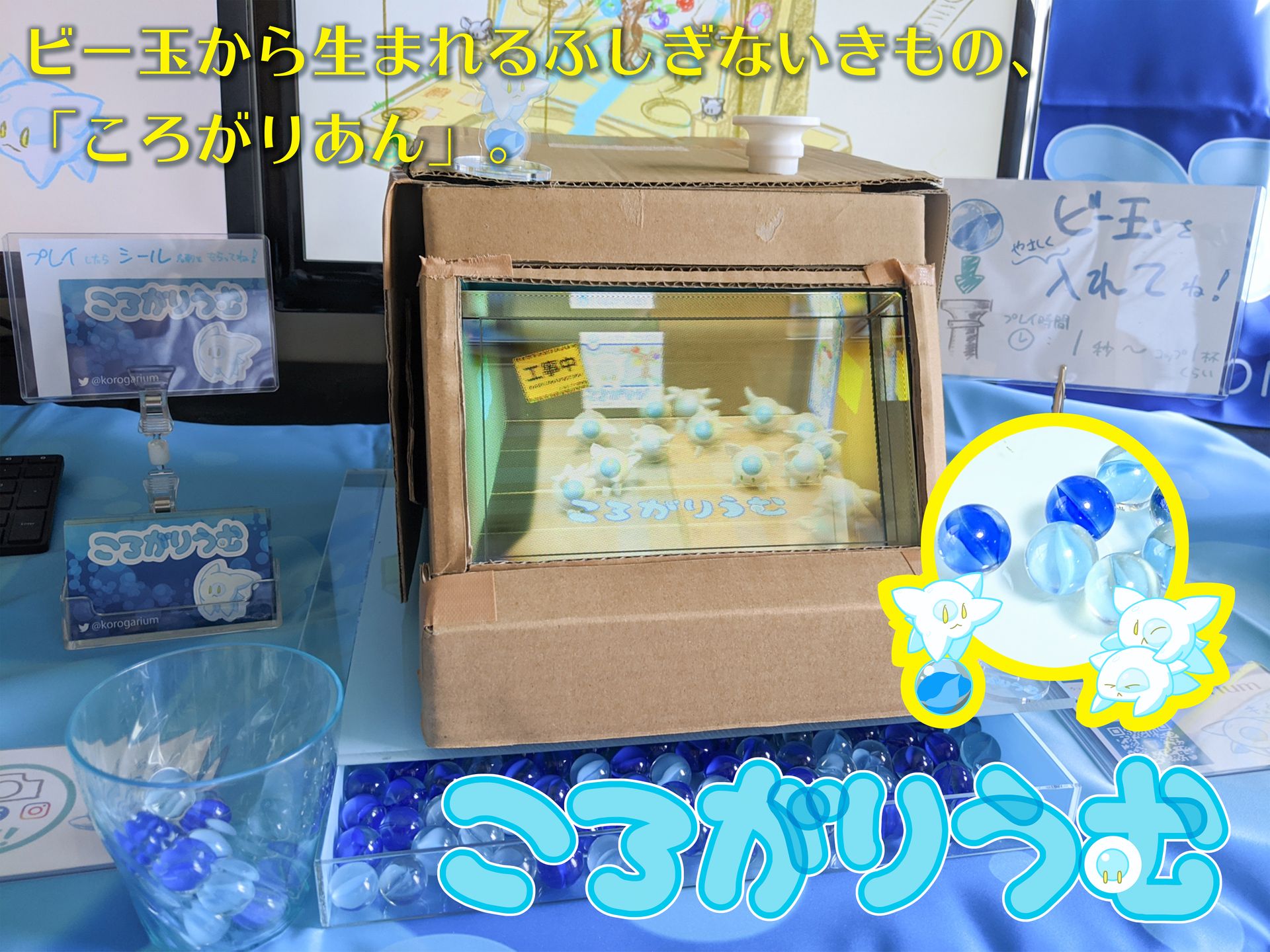 裸眼立体視ディスプレイ Looking Glass と独自のハードウェアを用いた作品『ころがりうむ』は、ディスプレイにビー玉を入れると、ふしぎないきもの「ころがりあん」が生まれるコンテンツです。