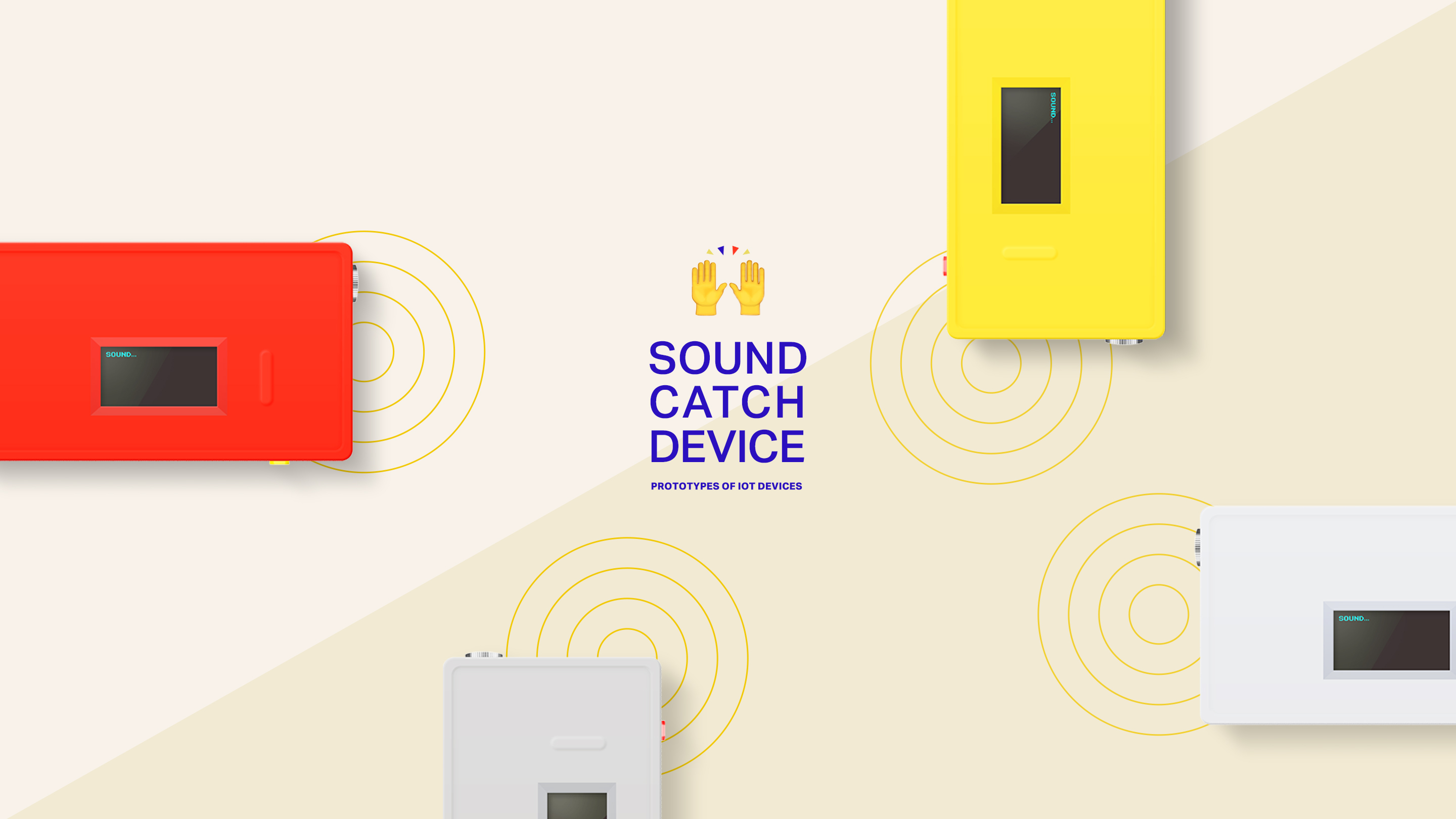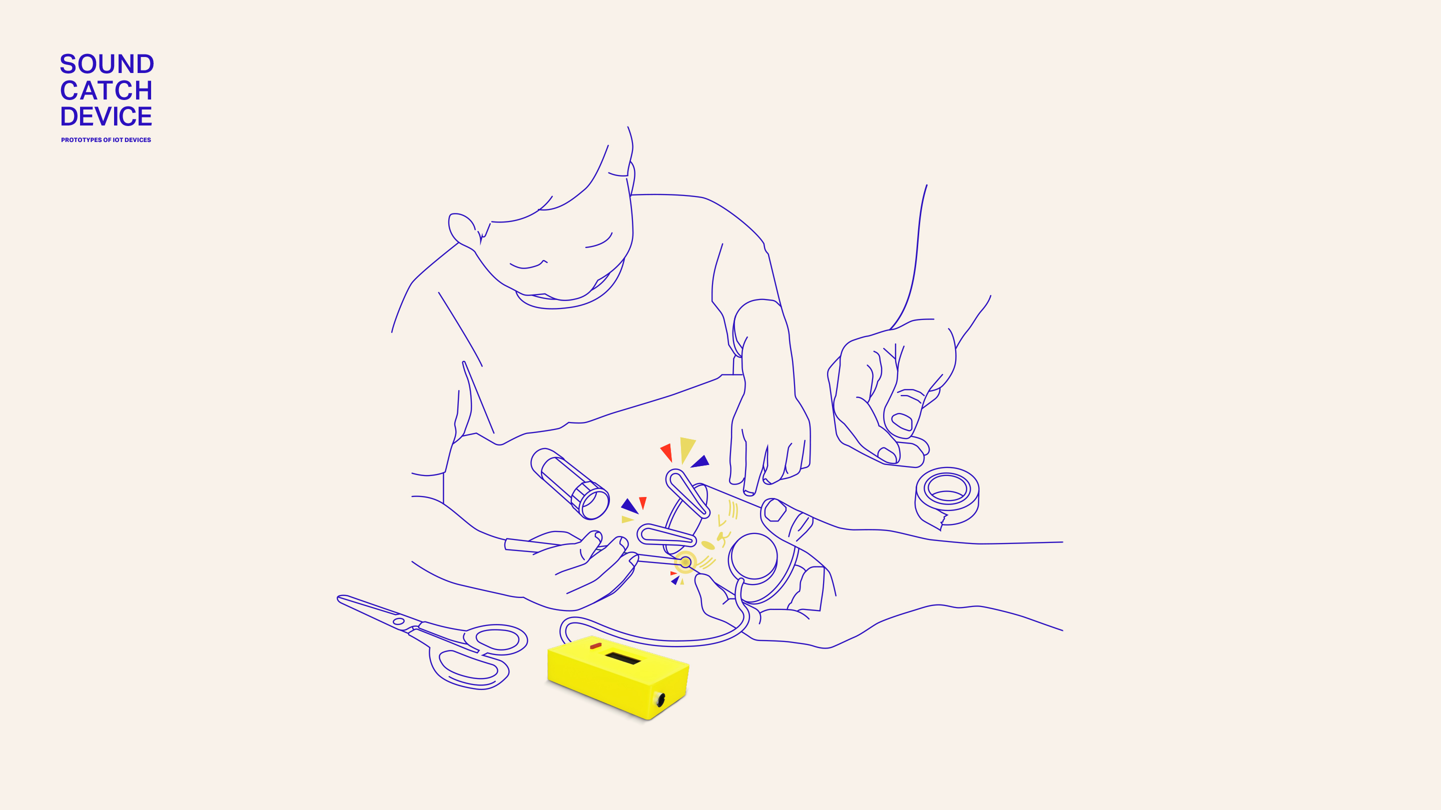 SOUND CATCH DEVICEは、音を『とる』ことで、身の回りにあるものをインターフェイス化するIoTデバイスのプロトタイプです。例えば、紙コップをペンで叩いたことや、ティッシュ箱に巻いた輪ゴムをはじいたことを検知します。また、Bluetoothやクラウドを介して通信する機能を備えているため、アプリやWebサイトと連携することができます。そしてそれは自分で工作したものと組み合わせて、電子楽器にしたり、ゲームのコントローラーにすることを可能にします。SOUND CATCH DEVICE自体はモデルごとに機能を割り得てたシンプルなインターフェースなので、ソフトウェアを開発することで、多様なコンテンツをうむことができます。